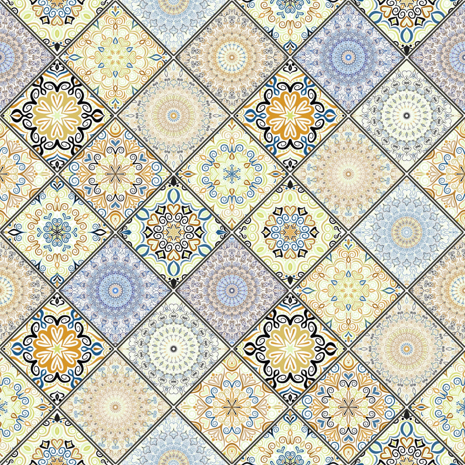 Klassische Farben: Dezente, klassische Farbtöne wie Grau, Blau oder Beige kombiniert zu einem harmonischen Patchwork-Design für ein zeitloses Bad.