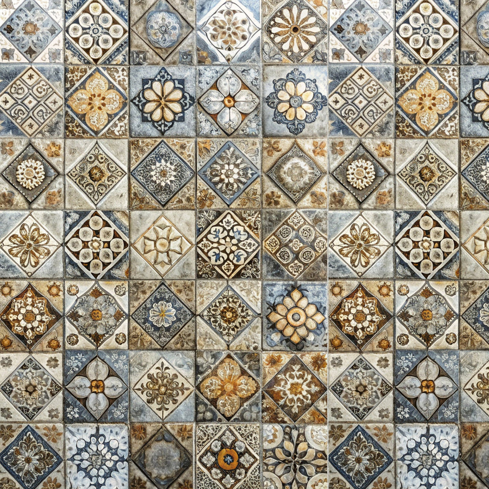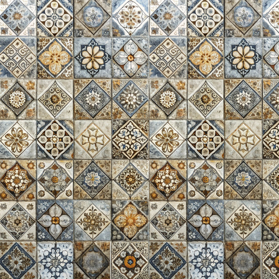 • **Vintage-Fliesenoptik:** Rustikale Designs mit klassischen Ornamenten, inspiriert von traditionellem Handwerk.