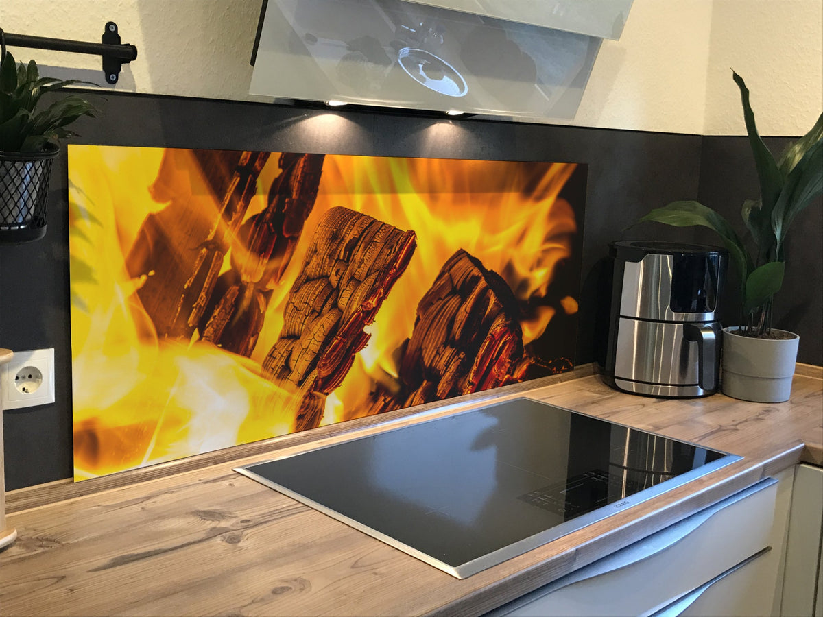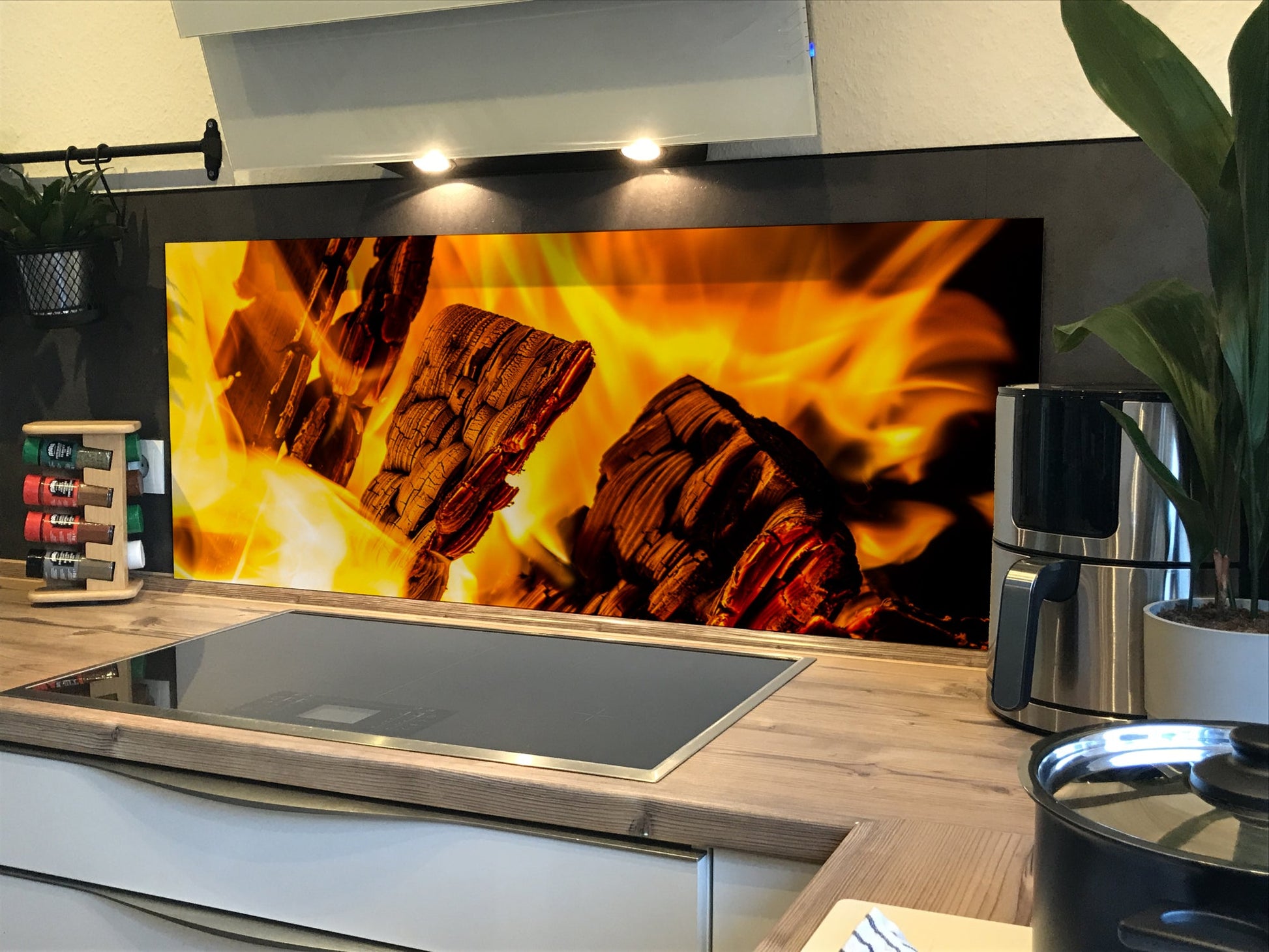 Verleihen Sie Ihrer Küche mit der Spritzschutz Küche Holz Feuer von Rueckwand21 einen stilvollen und modernen Look, der Ihre Persönlichkeit widerspiegelt. Passen Sie die Rückwand genau an Ihre Küche an – einfach Maße eingeben und den gewünschten Motivausschnitt auswählen – und schon ist Ihr neues Küchendesign fertig!