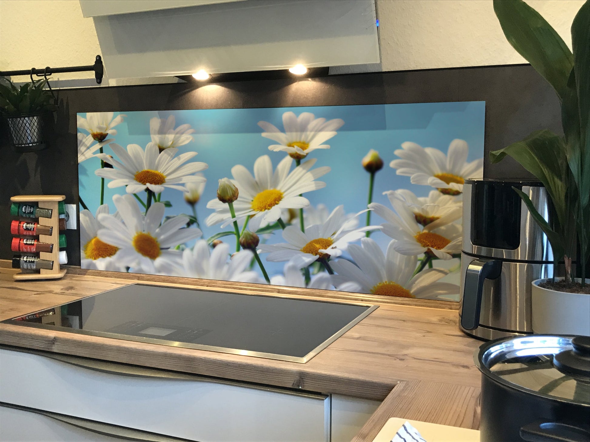 Verleihen Sie Ihrer Küche mit der Spritzschutz Küche Gänseblümchen von Rueckwand21 einen stilvollen und modernen Look, der Ihre Persönlichkeit widerspiegelt. Passen Sie die Rückwand genau an Ihre Küche an – einfach Maße eingeben und den gewünschten Motivausschnitt auswählen – und schon ist Ihr neues Küchendesign fertig!
