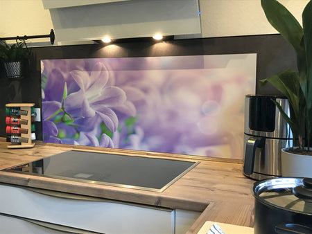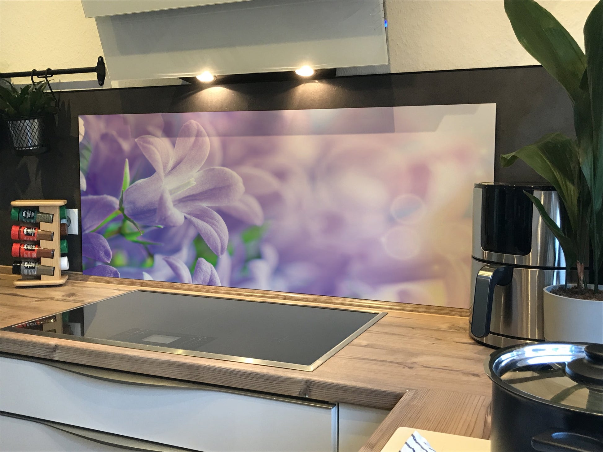Verleihen Sie Ihrer Küche mit der Spritzschutz Küche Lila Blume von Rueckwand21 einen stilvollen und modernen Look, der Ihre Persönlichkeit widerspiegelt. Passen Sie die Rückwand genau an Ihre Küche an – einfach Maße eingeben und den gewünschten Motivausschnitt auswählen – und schon ist Ihr neues Küchendesign fertig!