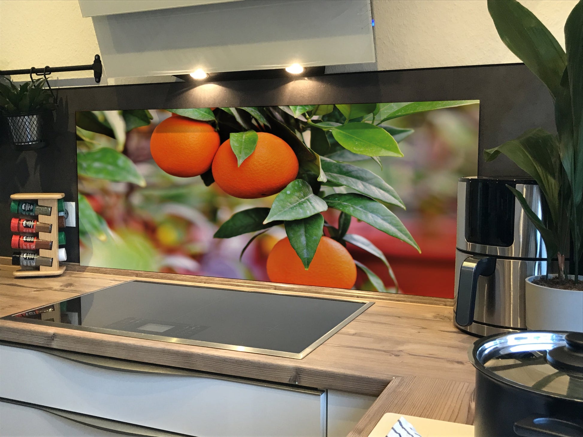 Verleihen Sie Ihrer Küche mit der Spritzschutz Küche Orangenbaum von Rueckwand21 einen stilvollen und modernen Look, der Ihre Persönlichkeit widerspiegelt. Passen Sie die Rückwand genau an Ihre Küche an – einfach Maße eingeben und den gewünschten Motivausschnitt auswählen – und schon ist Ihr neues Küchendesign fertig!