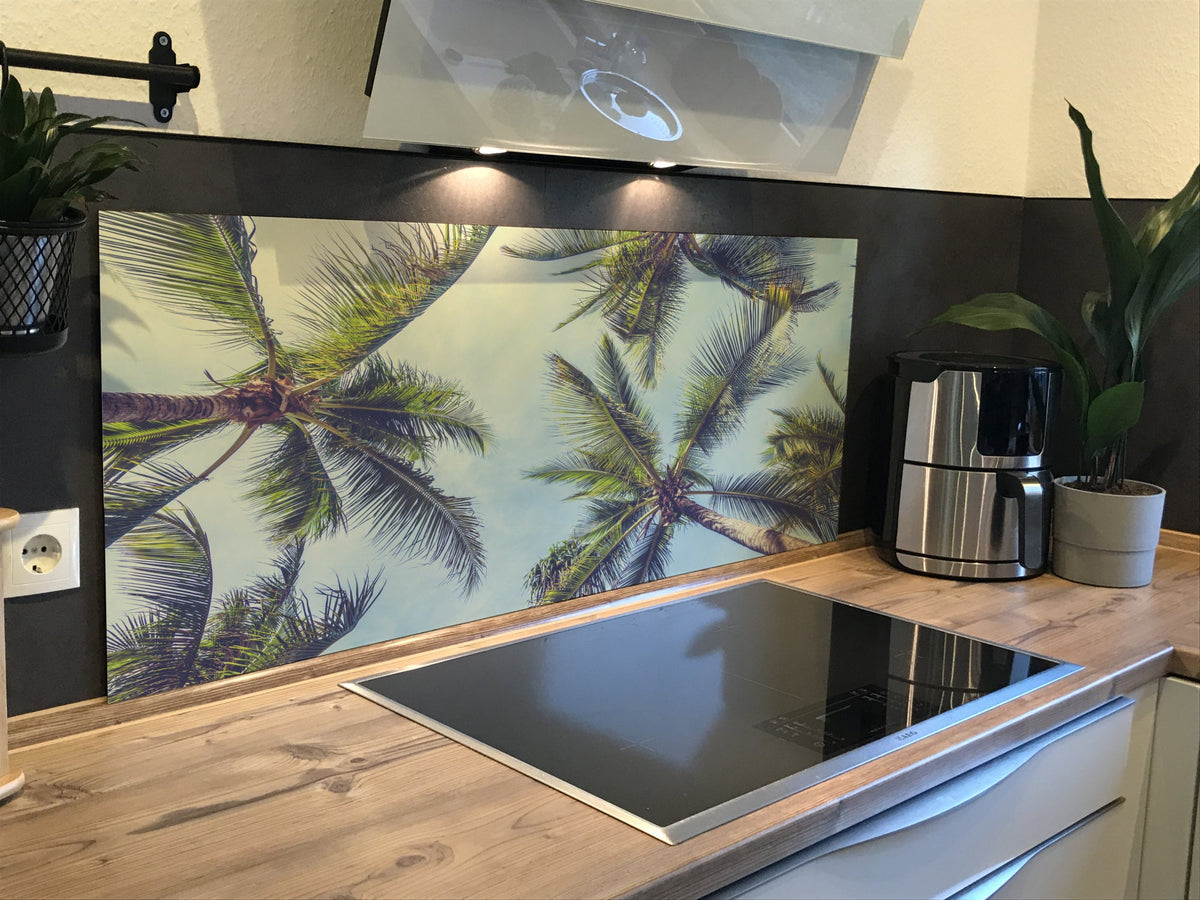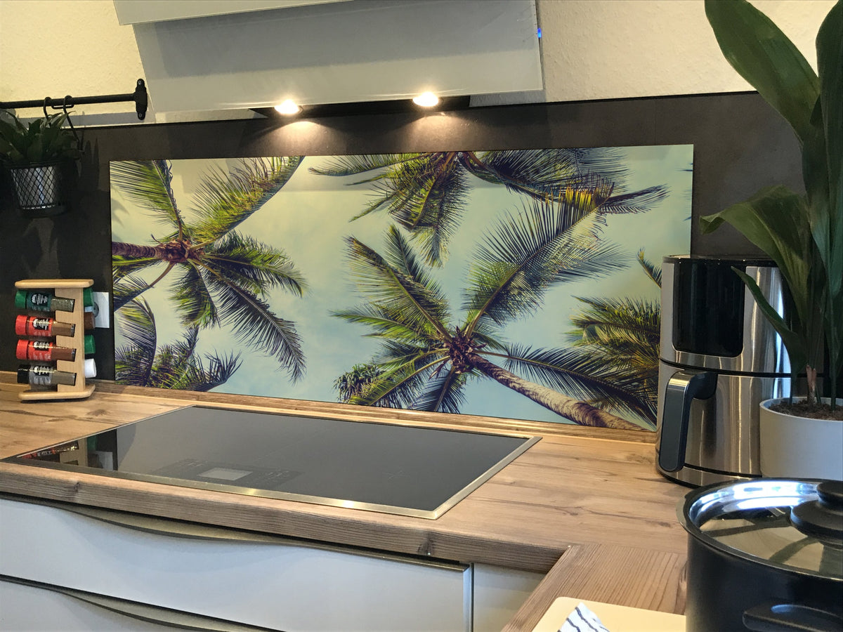 Verleihen Sie Ihrer Küche mit der Spritzschutz Küche Palmen von Rueckwand21 einen stilvollen und modernen Look, der Ihre Persönlichkeit widerspiegelt. Passen Sie die Rückwand genau an Ihre Küche an – einfach Maße eingeben und den gewünschten Motivausschnitt auswählen – und schon ist Ihr neues Küchendesign fertig!