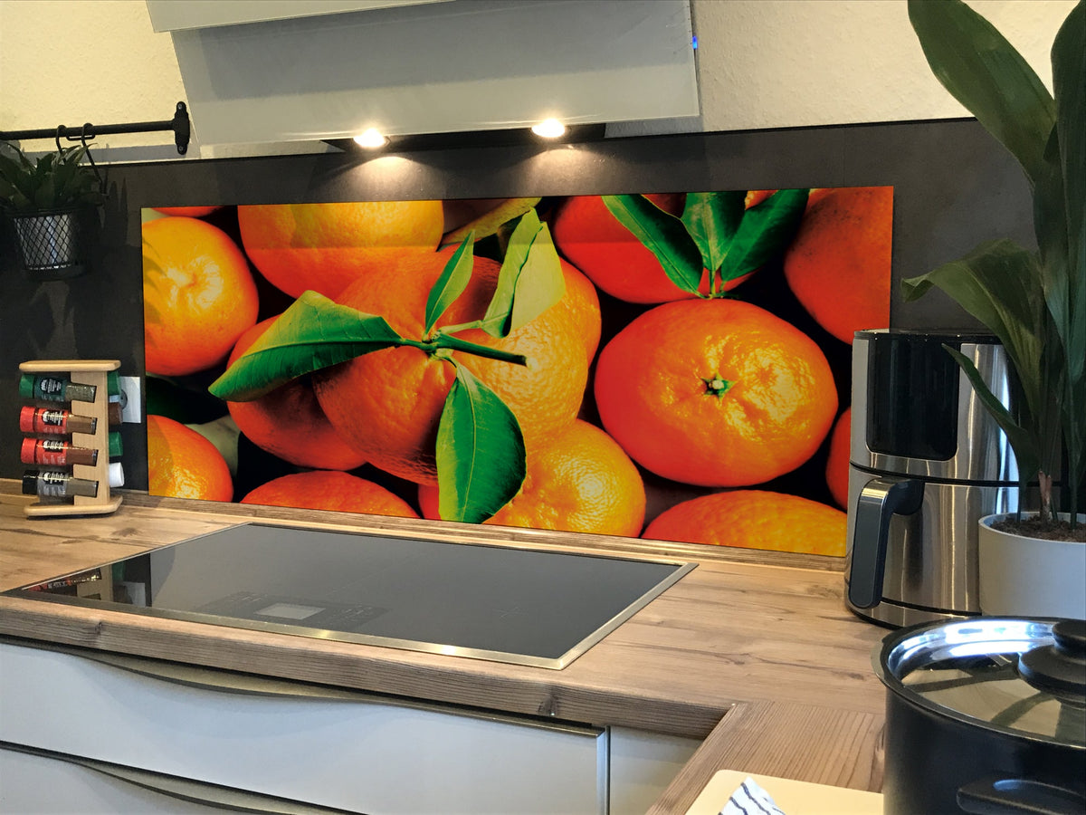 Verleihen Sie Ihrer Küche mit der Spritzschutz Küche Mandarinen von Rueckwand21 einen stilvollen und modernen Look, der Ihre Persönlichkeit widerspiegelt. Passen Sie die Rückwand genau an Ihre Küche an – einfach Maße eingeben und den gewünschten Motivausschnitt auswählen – und schon ist Ihr neues Küchendesign fertig!