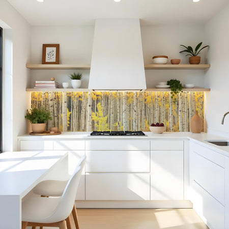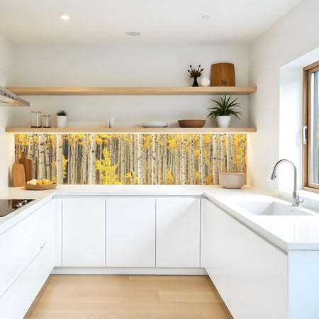 Verleihen Sie Ihrer Küche mit der Küchenrückwand Birkenwald von Rueckwand21 einen stilvollen und modernen Look, der Ihre Persönlichkeit widerspiegelt. Passen Sie die Rückwand genau an Ihre Küche an – einfach Maße eingeben und den gewünschten Motivausschnitt auswählen – und schon ist Ihr neues Küchendesign fertig!