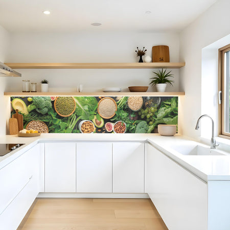 Verleihen Sie Ihrer Küche mit der Küchenrückwand Frische und gesunde Küche von Rueckwand21 einen stilvollen und modernen Look, der Ihre Persönlichkeit widerspiegelt. Passen Sie die Rückwand genau an Ihre Küche an – einfach Maße eingeben und den gewünschten Motivausschnitt auswählen – und schon ist Ihr neues Küchendesign fertig!