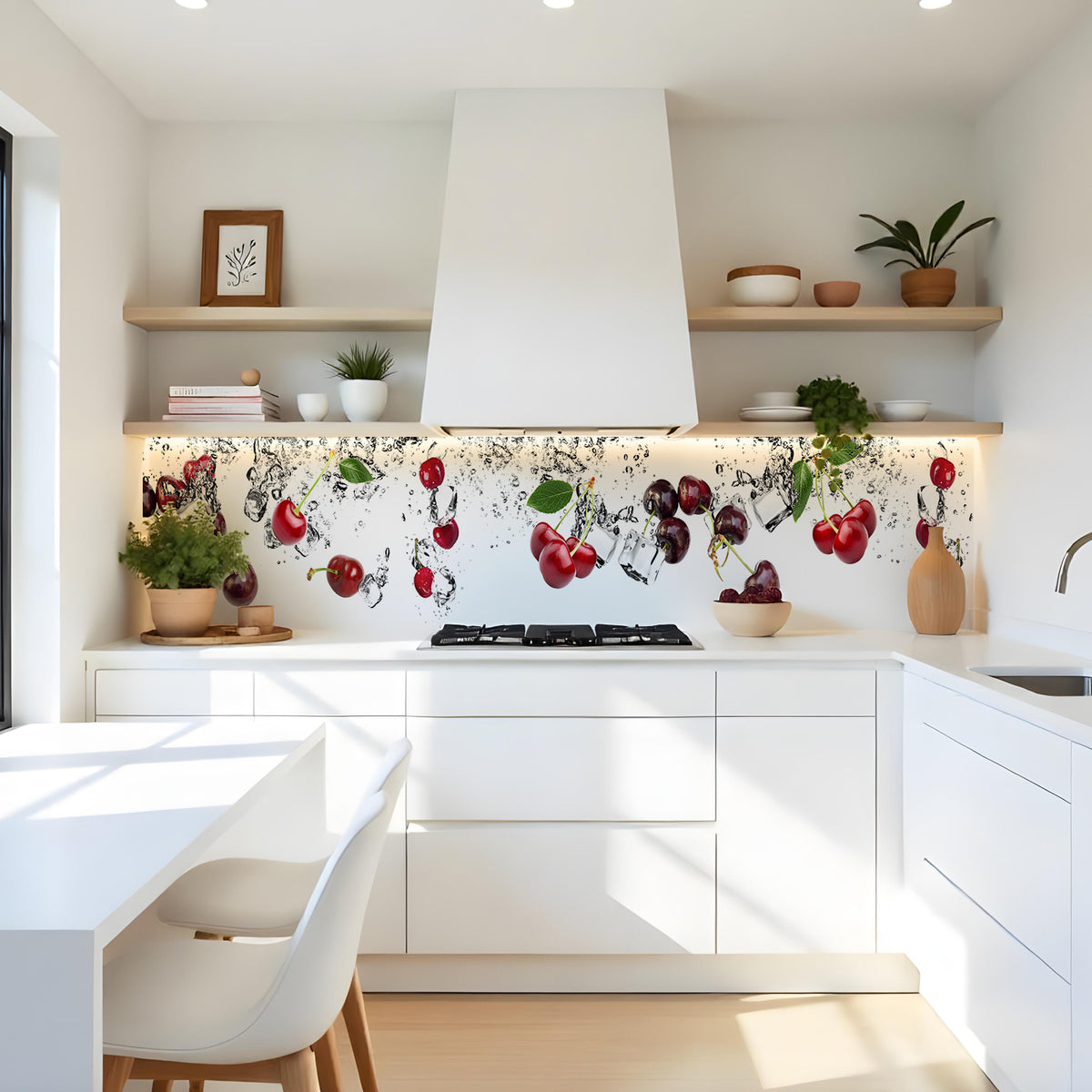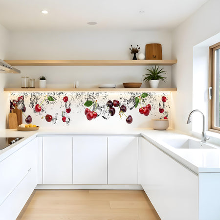 Verleihen Sie Ihrer Küche mit der Küchenrückwand Obst Kirschen von Rueckwand21 einen stilvollen und modernen Look, der Ihre Persönlichkeit widerspiegelt. Passen Sie die Rückwand genau an Ihre Küche an – einfach Maße eingeben und den gewünschten Motivausschnitt auswählen – und schon ist Ihr neues Küchendesign fertig!