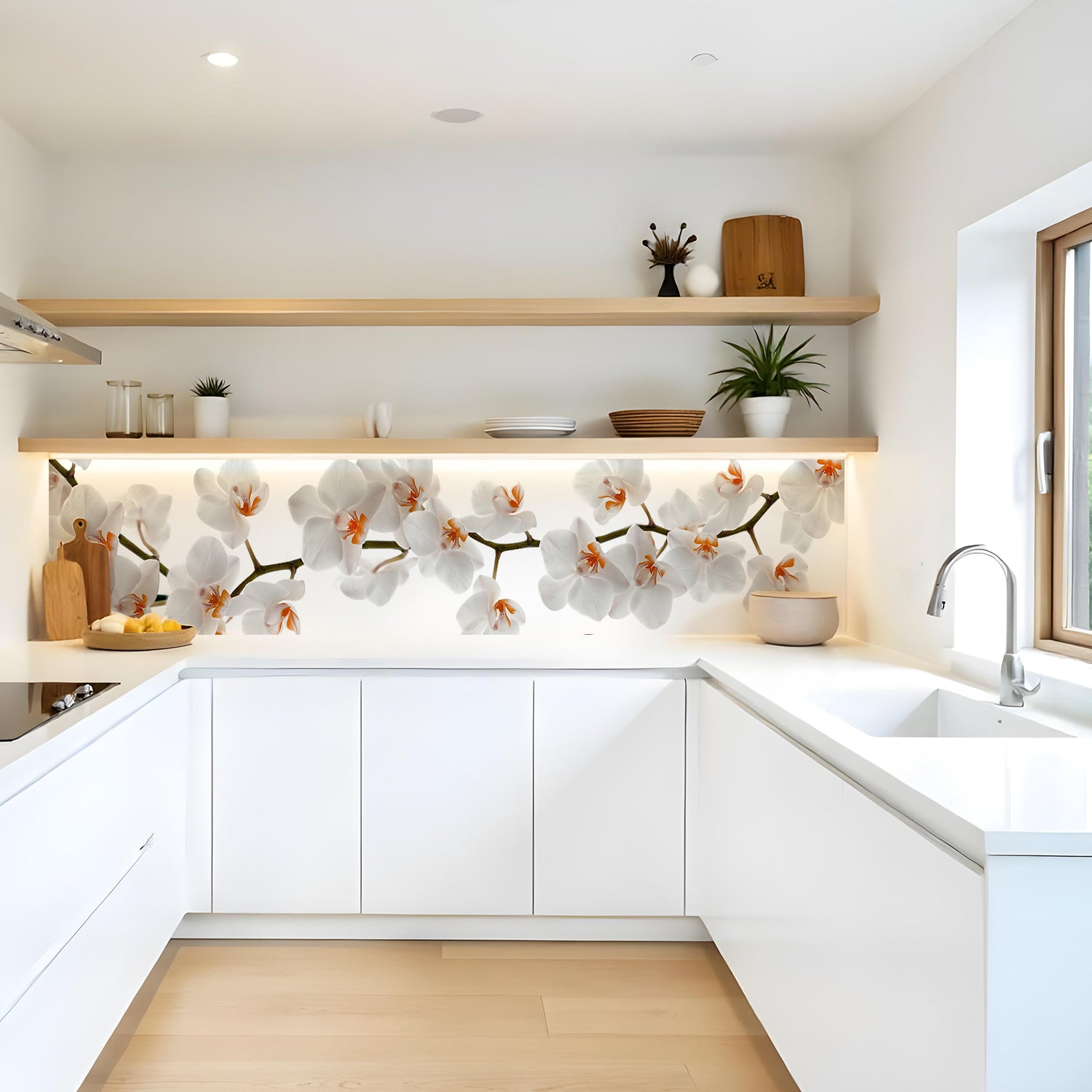 Verleihen Sie Ihrer Küche mit der Küchenrückwand Weiße Orchideen von Rueckwand21 einen stilvollen und modernen Look, der Ihre Persönlichkeit widerspiegelt. Passen Sie die Rückwand genau an Ihre Küche an – einfach Maße eingeben und den gewünschten Motivausschnitt auswählen – und schon ist Ihr neues Küchendesign fertig!