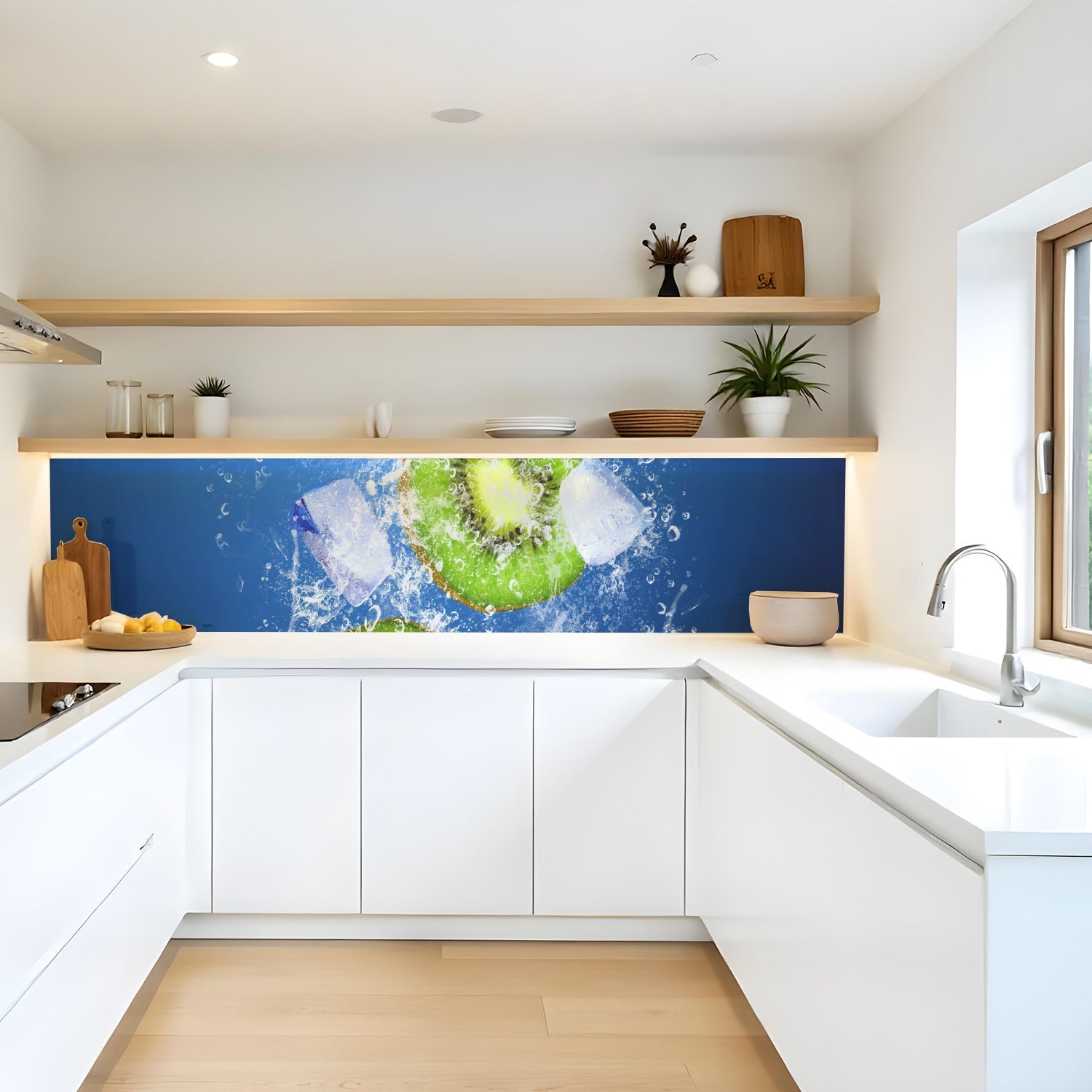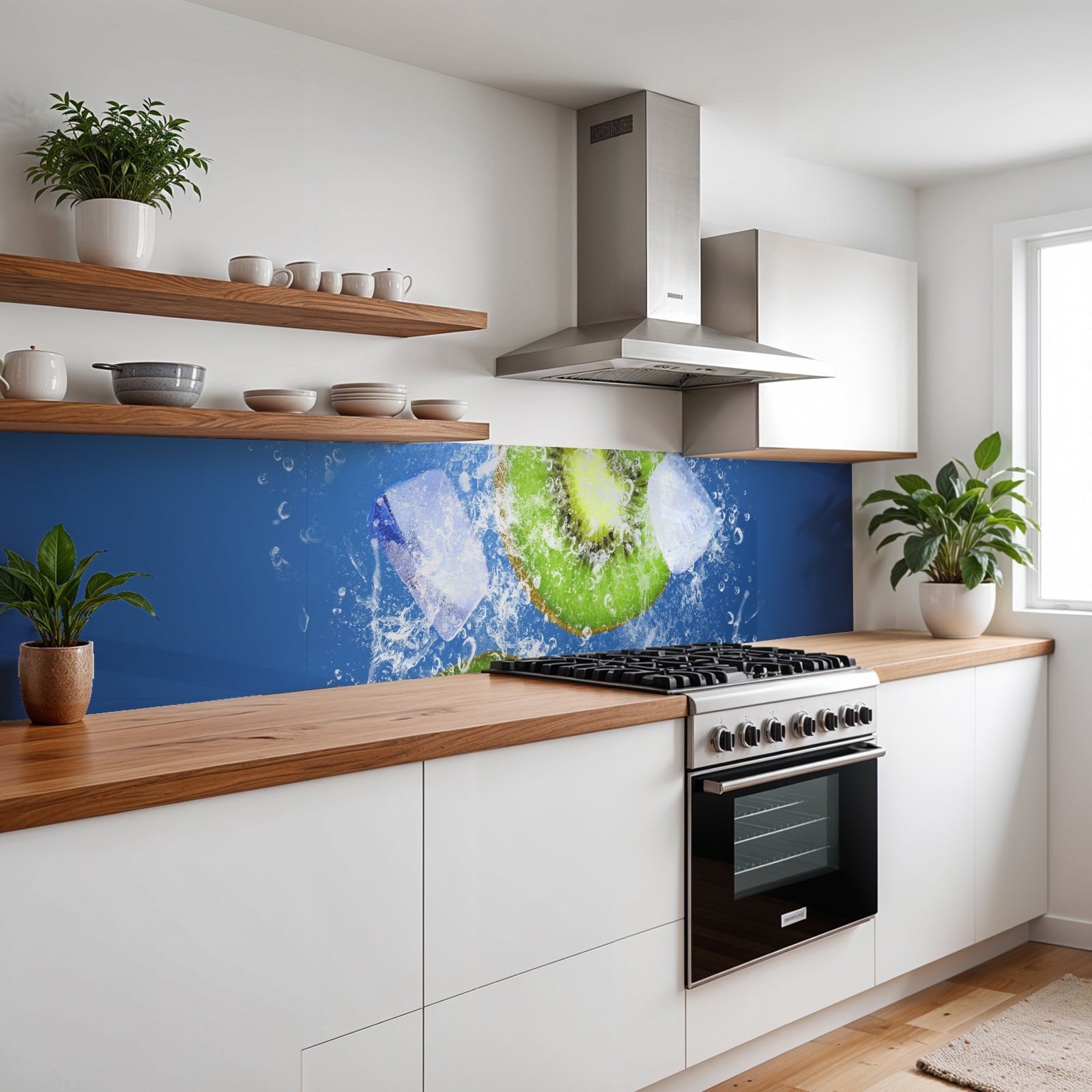 Verleihen Sie Ihrer Küche mit der Küchenrückwand Kiwi Splash von Rueckwand21 einen stilvollen und modernen Look, der Ihre Persönlichkeit widerspiegelt. Passen Sie die Rückwand genau an Ihre Küche an – einfach Maße eingeben und den gewünschten Motivausschnitt auswählen – und schon ist Ihr neues Küchendesign fertig!