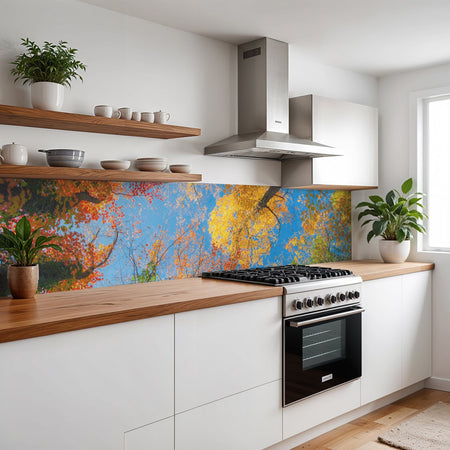 Verleihen Sie Ihrer Küche mit der Küchenrückwand Herbst von Rueckwand21 einen stilvollen und modernen Look, der Ihre Persönlichkeit widerspiegelt. Passen Sie die Rückwand genau an Ihre Küche an – einfach Maße eingeben und den gewünschten Motivausschnitt auswählen – und schon ist Ihr neues Küchendesign fertig!