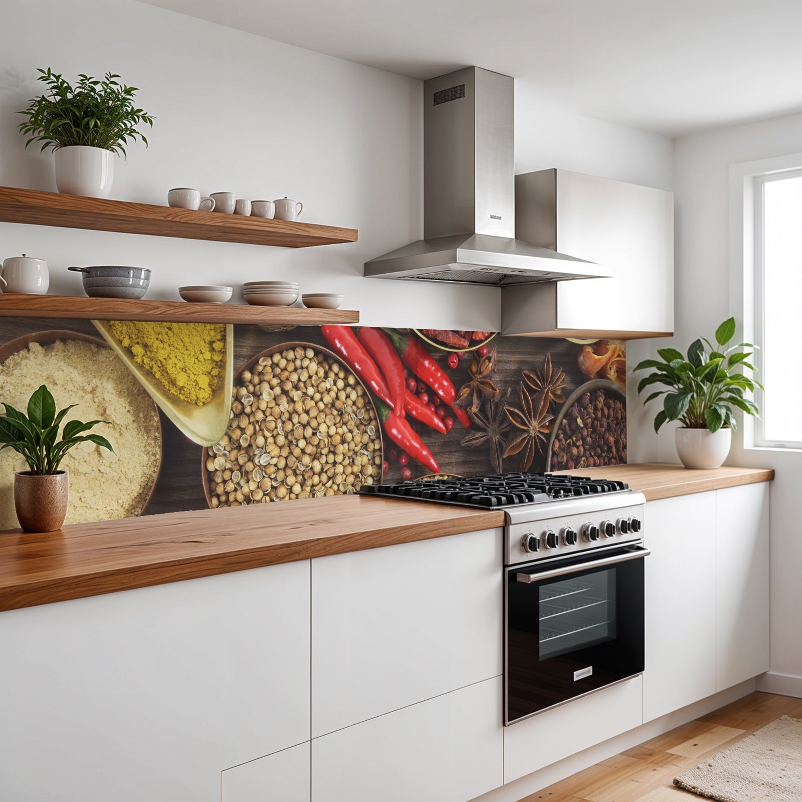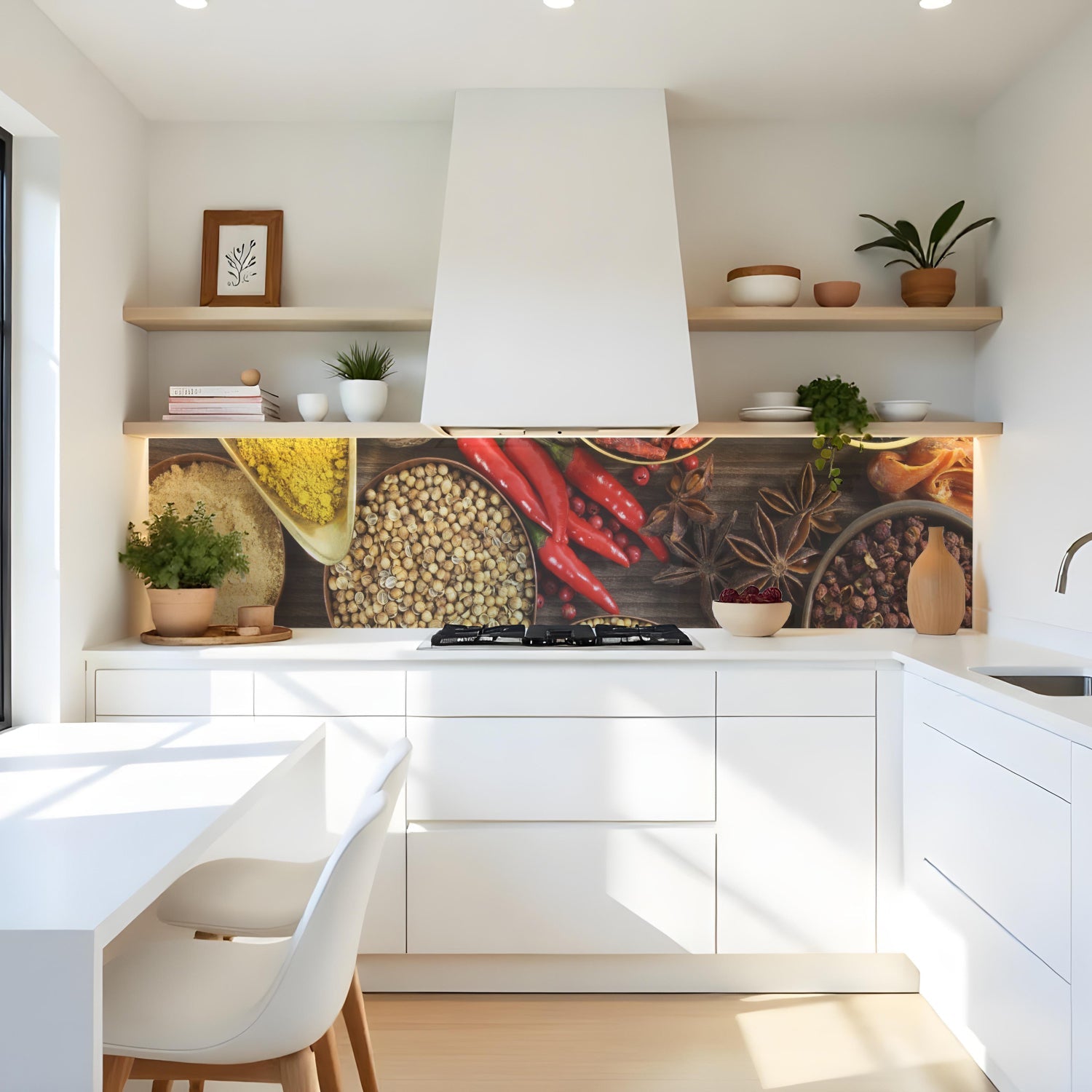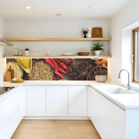 Verleihen Sie Ihrer Küche mit der Küchenrückwand Peppers von Rueckwand21 einen stilvollen und modernen Look, der Ihre Persönlichkeit widerspiegelt. Passen Sie die Rückwand genau an Ihre Küche an – einfach Maße eingeben und den gewünschten Motivausschnitt auswählen – und schon ist Ihr neues Küchendesign fertig!