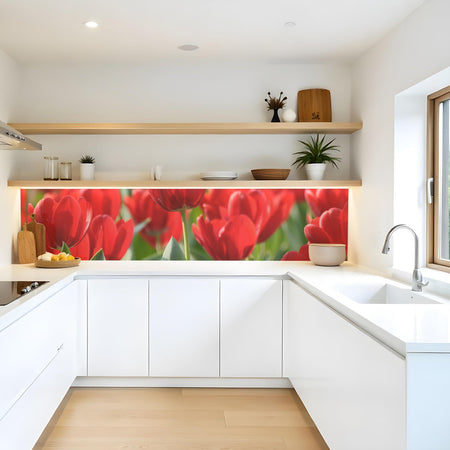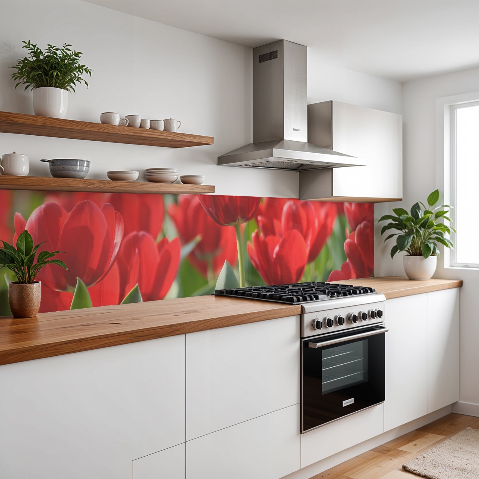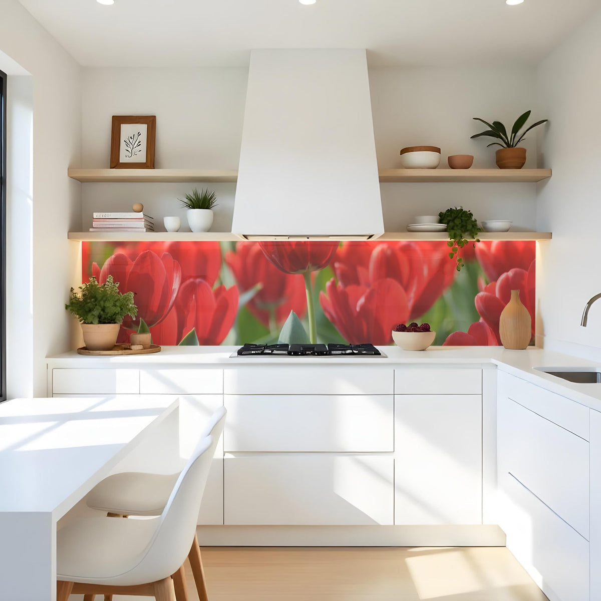 Verleihen Sie Ihrer Küche mit der Küchenrückwand Tulpenfeld von Rueckwand21 einen stilvollen und modernen Look, der Ihre Persönlichkeit widerspiegelt. Passen Sie die Rückwand genau an Ihre Küche an – einfach Maße eingeben und den gewünschten Motivausschnitt auswählen – und schon ist Ihr neues Küchendesign fertig!