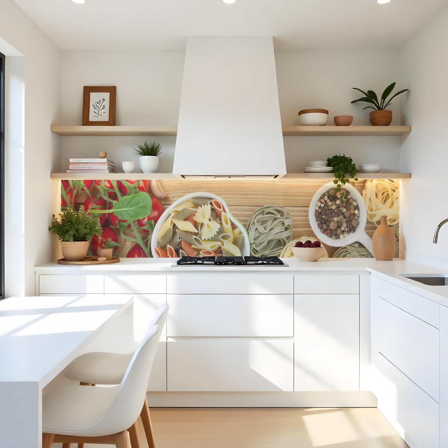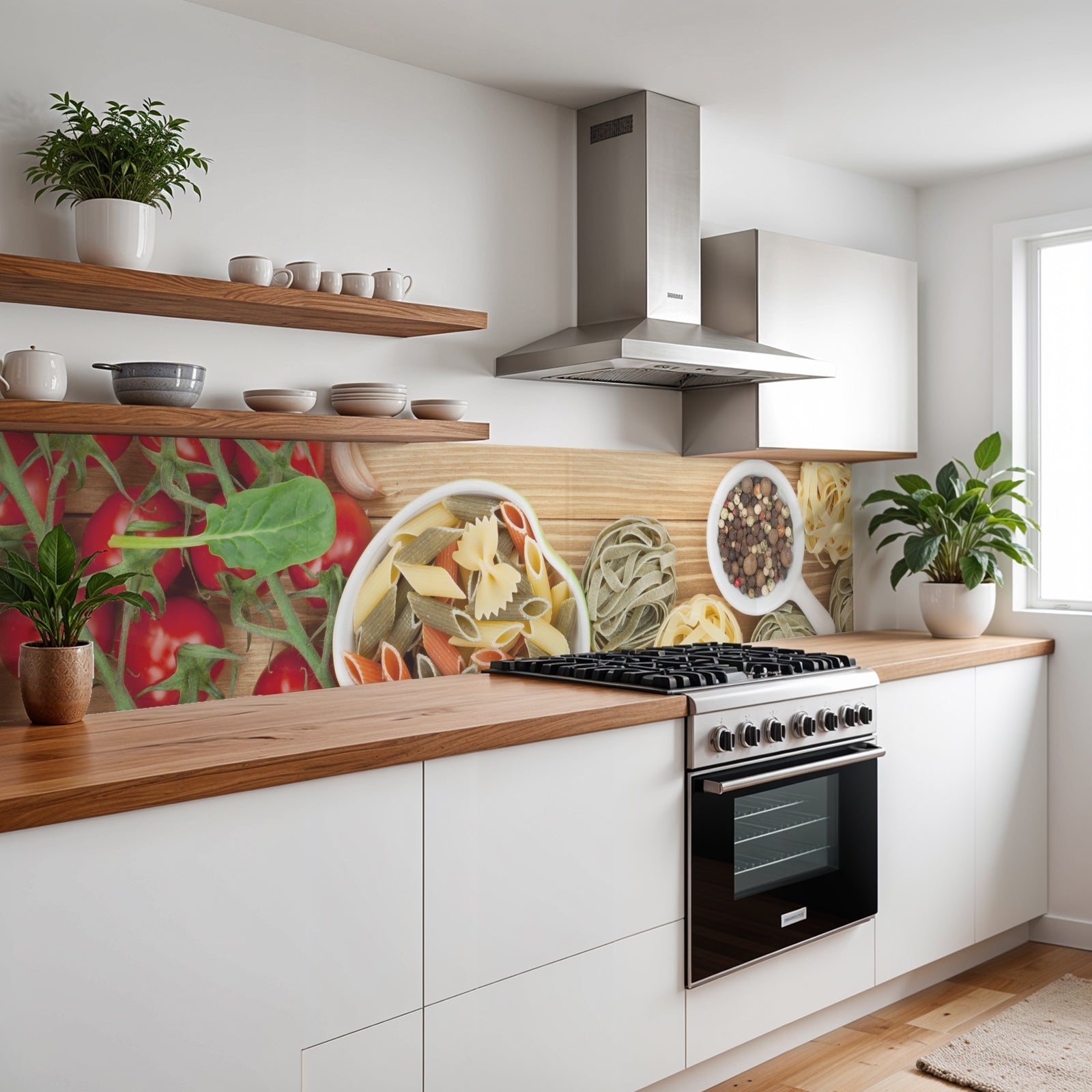 Verleihen Sie Ihrer Küche mit der Küchenrückwand Pasta Italia von Rueckwand21 einen stilvollen und modernen Look, der Ihre Persönlichkeit widerspiegelt. Passen Sie die Rückwand genau an Ihre Küche an – einfach Maße eingeben und den gewünschten Motivausschnitt auswählen – und schon ist Ihr neues Küchendesign fertig!