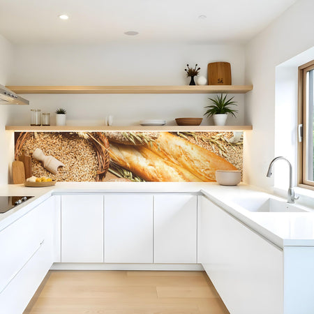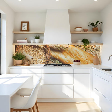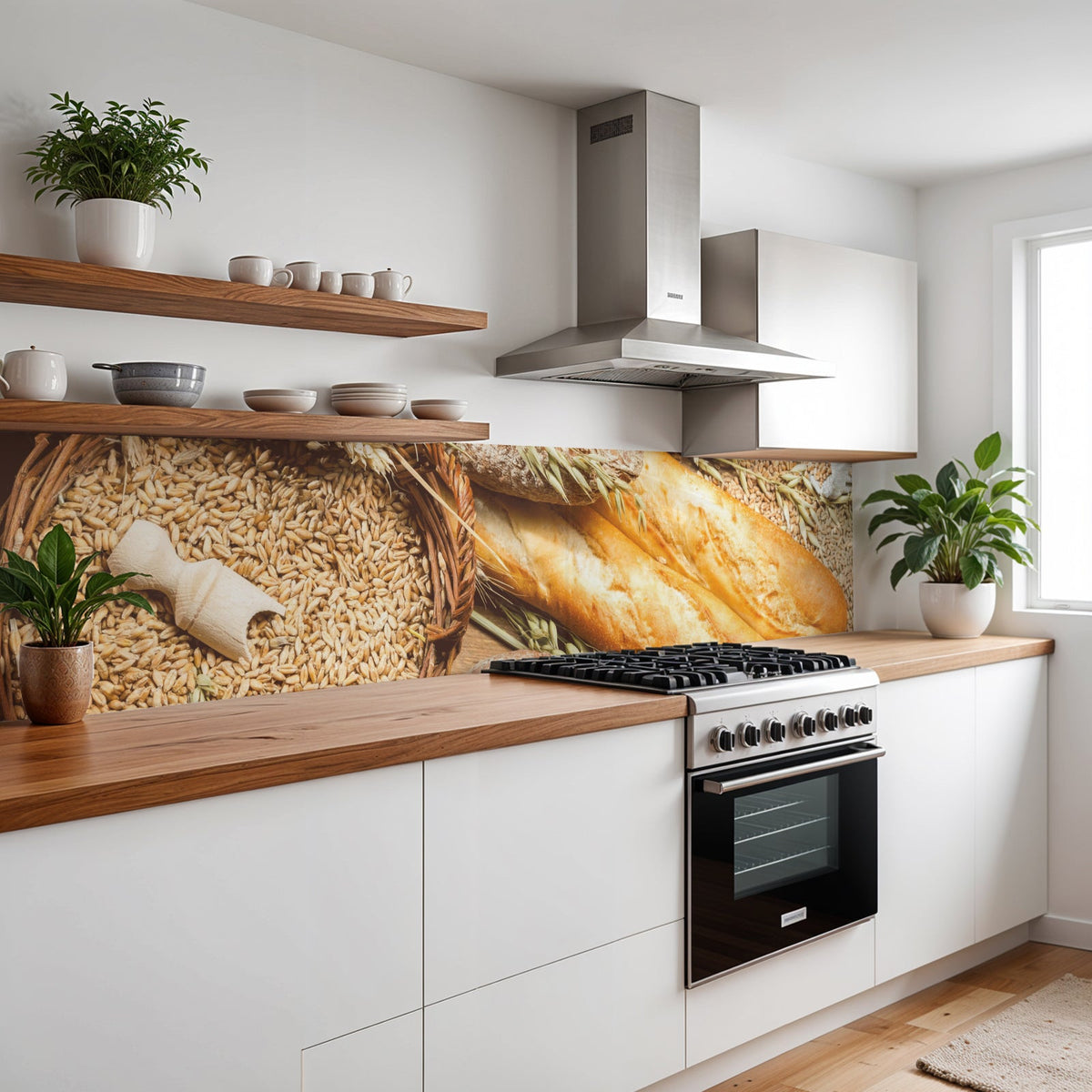 Verleihen Sie Ihrer Küche mit der Küchenrückwand Weizen Brot von Rueckwand21 einen stilvollen und modernen Look, der Ihre Persönlichkeit widerspiegelt. Passen Sie die Rückwand genau an Ihre Küche an – einfach Maße eingeben und den gewünschten Motivausschnitt auswählen – und schon ist Ihr neues Küchendesign fertig!