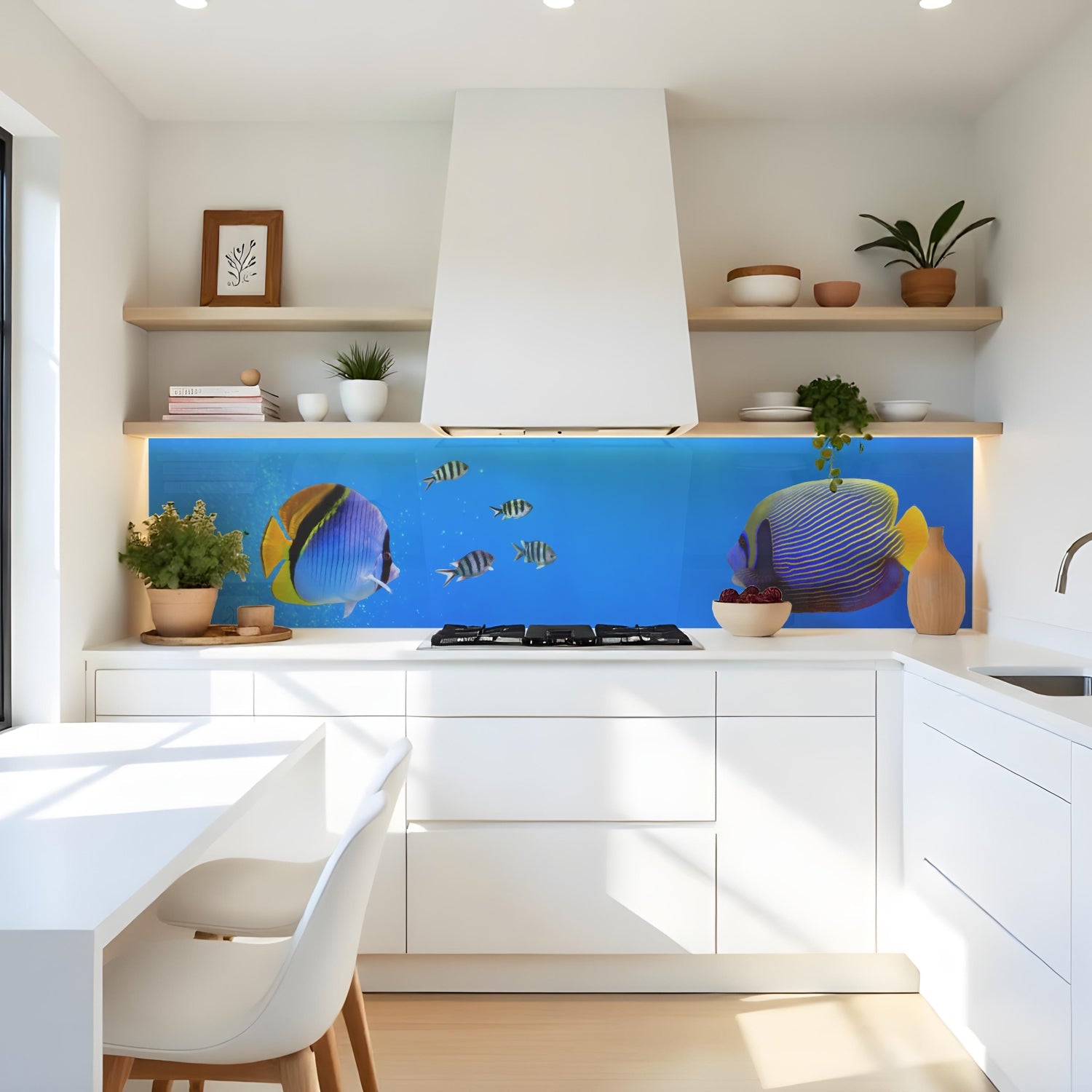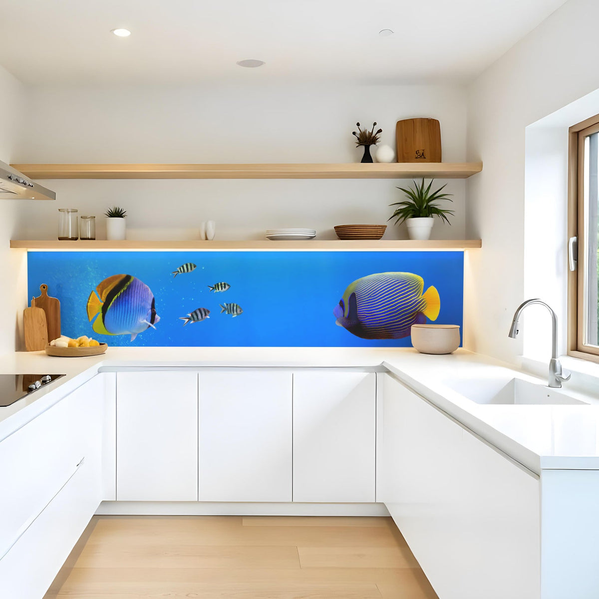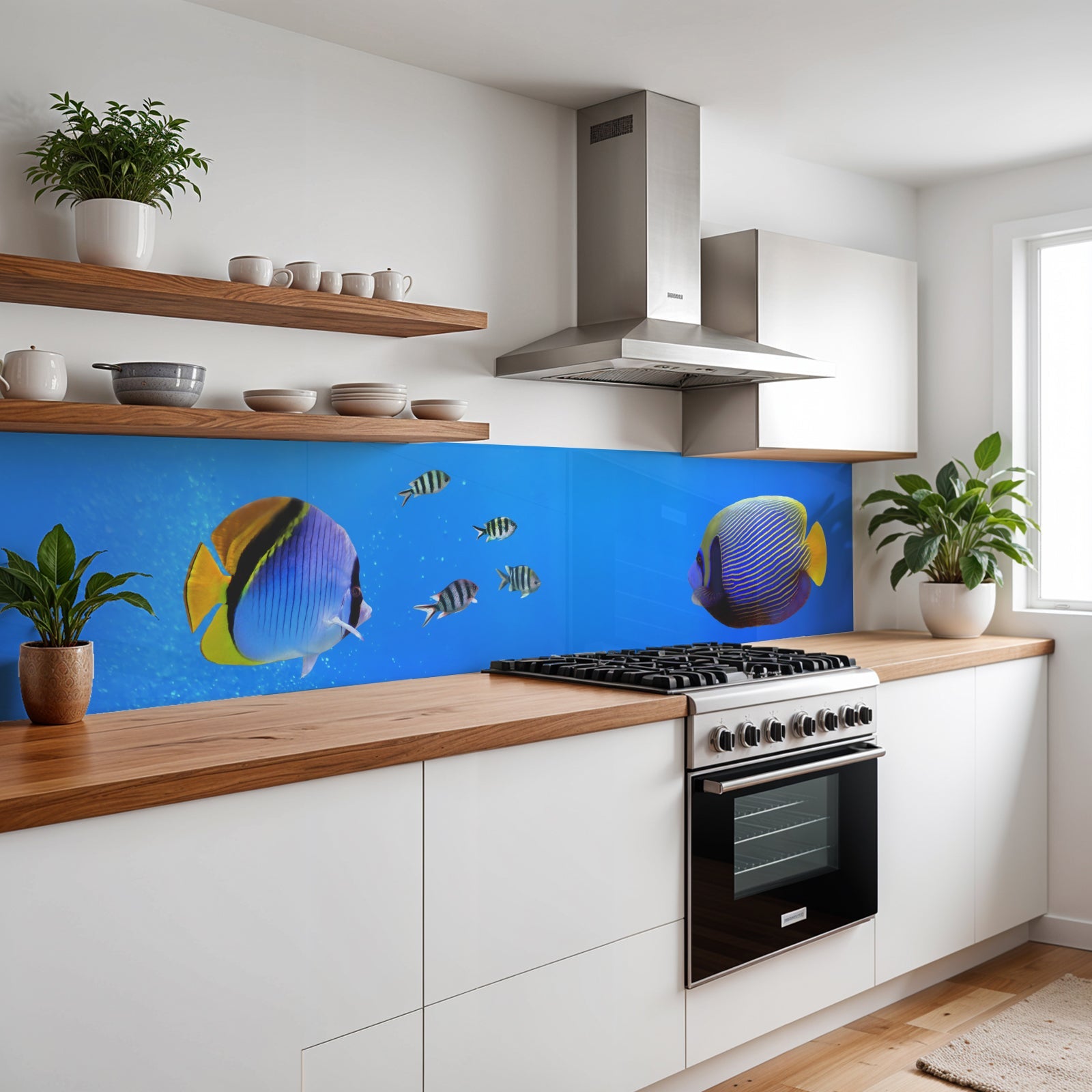 Verleihen Sie Ihrer Küche mit der Küchenrückwand Kaiserfisch von Rueckwand21 einen stilvollen und modernen Look, der Ihre Persönlichkeit widerspiegelt. Passen Sie die Rückwand genau an Ihre Küche an – einfach Maße eingeben und den gewünschten Motivausschnitt auswählen – und schon ist Ihr neues Küchendesign fertig!