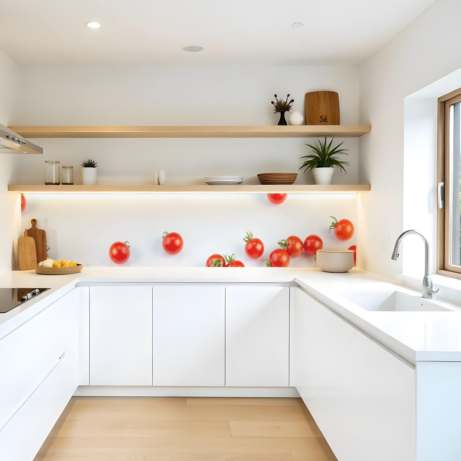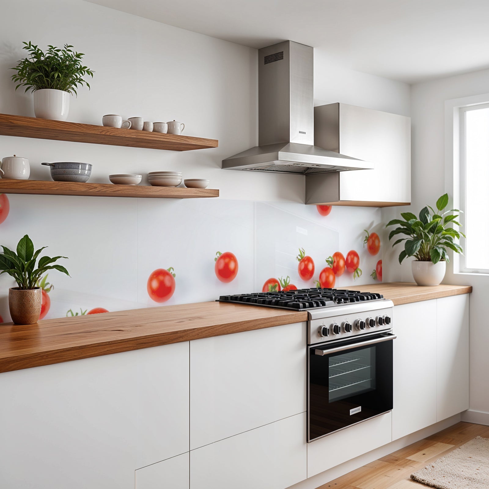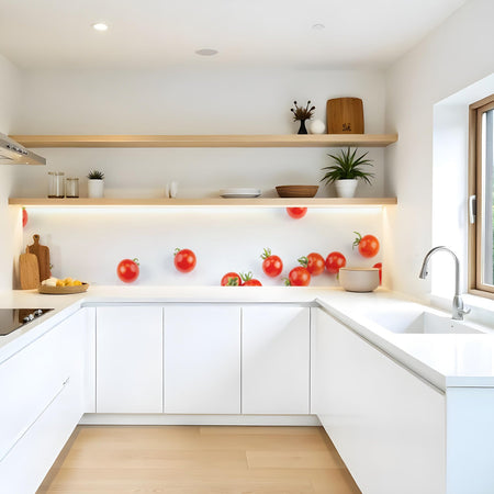 Verleihen Sie Ihrer Küche mit der Küchenrückwand Cherry Tomaten von Rueckwand21 einen stilvollen und modernen Look, der Ihre Persönlichkeit widerspiegelt. Passen Sie die Rückwand genau an Ihre Küche an – einfach Maße eingeben und den gewünschten Motivausschnitt auswählen – und schon ist Ihr neues Küchendesign fertig!