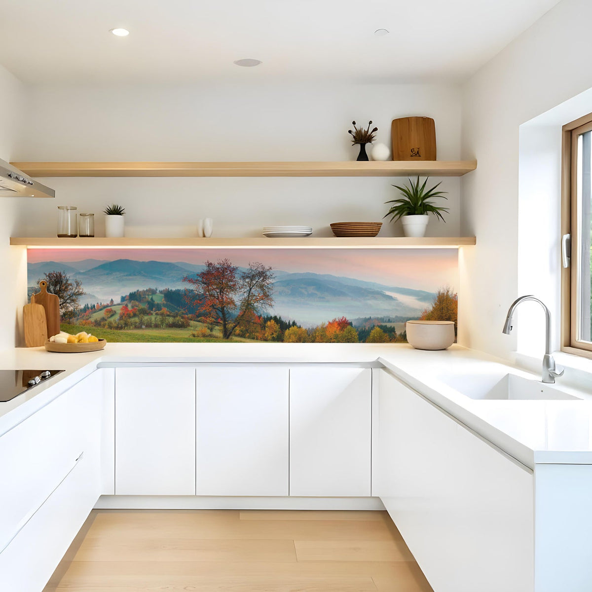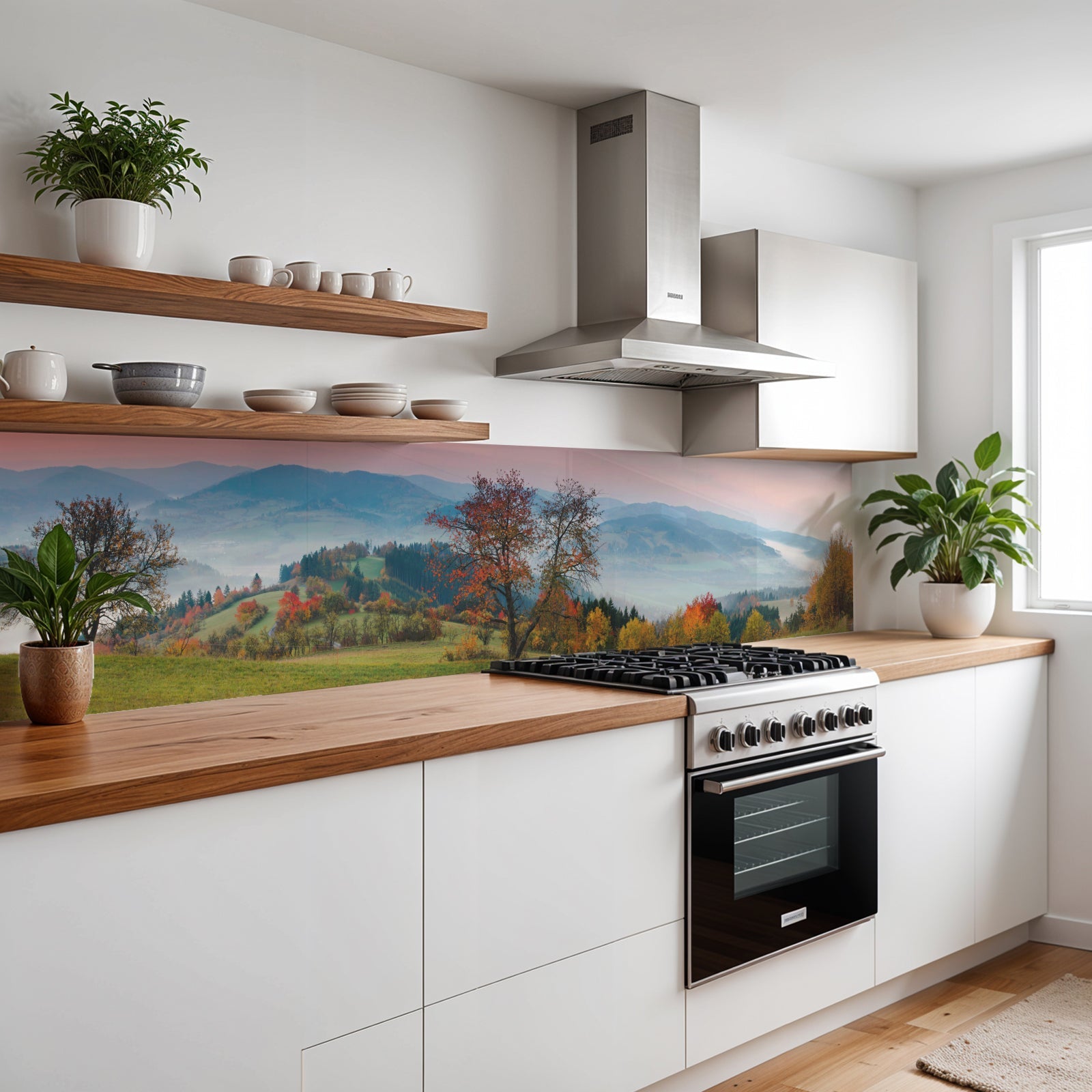 Verleihen Sie Ihrer Küche mit der Küchenrückwand Natur Berge von Rueckwand21 einen stilvollen und modernen Look, der Ihre Persönlichkeit widerspiegelt. Passen Sie die Rückwand genau an Ihre Küche an – einfach Maße eingeben und den gewünschten Motivausschnitt auswählen – und schon ist Ihr neues Küchendesign fertig!