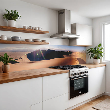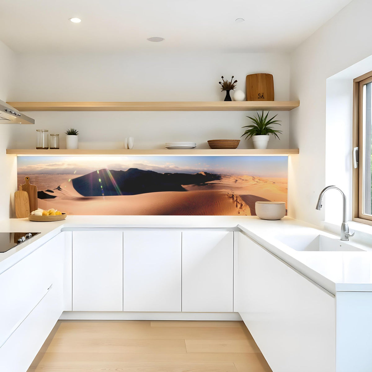 Verleihen Sie Ihrer Küche mit der Küchenrückwand Wüste von Rueckwand21 einen stilvollen und modernen Look, der Ihre Persönlichkeit widerspiegelt. Passen Sie die Rückwand genau an Ihre Küche an – einfach Maße eingeben und den gewünschten Motivausschnitt auswählen – und schon ist Ihr neues Küchendesign fertig!