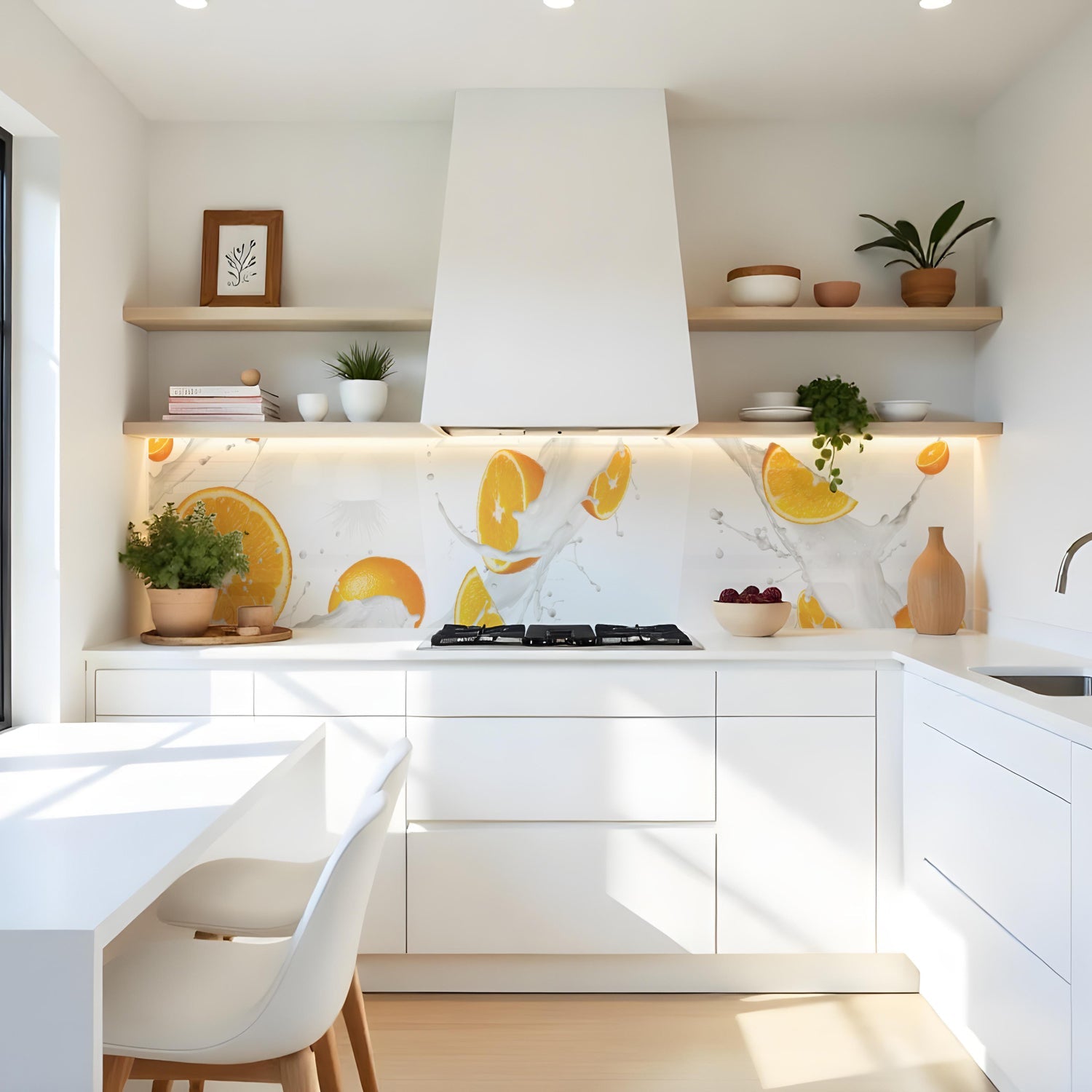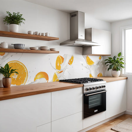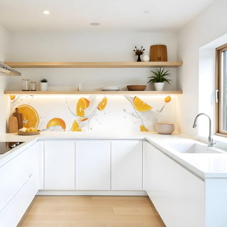 Verleihen Sie Ihrer Küche mit der Küchenrückwand Orangen milk splash von Rueckwand21 einen stilvollen und modernen Look, der Ihre Persönlichkeit widerspiegelt. Passen Sie die Rückwand genau an Ihre Küche an – einfach Maße eingeben und den gewünschten Motivausschnitt auswählen – und schon ist Ihr neues Küchendesign fertig!