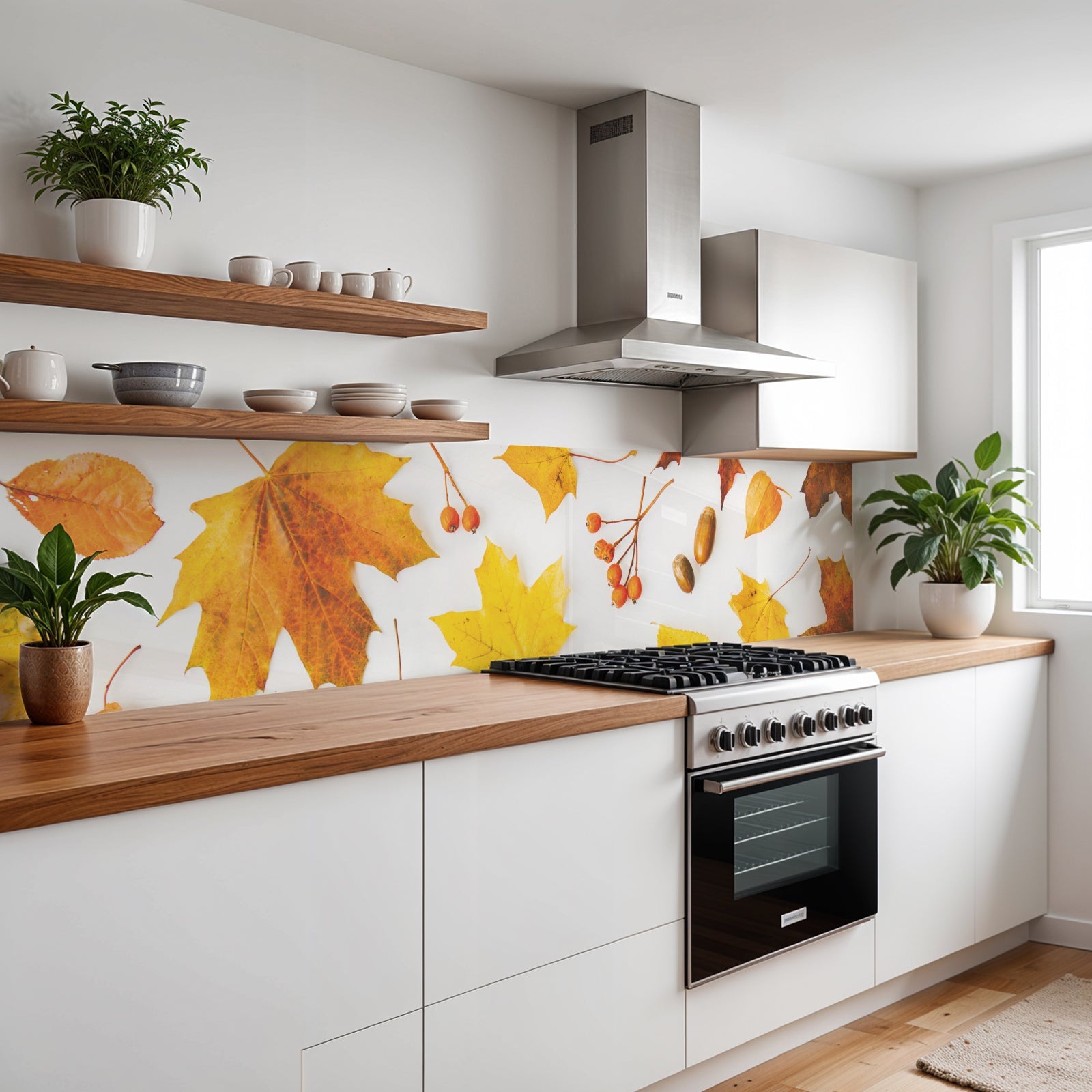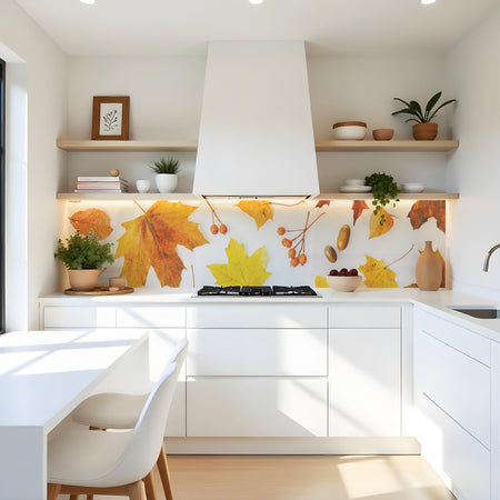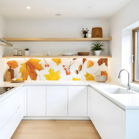 Verleihen Sie Ihrer Küche mit der Küchenrückwand Ahornblatt Herbst von Rueckwand21 einen stilvollen und modernen Look, der Ihre Persönlichkeit widerspiegelt. Passen Sie die Rückwand genau an Ihre Küche an – einfach Maße eingeben und den gewünschten Motivausschnitt auswählen – und schon ist Ihr neues Küchendesign fertig!