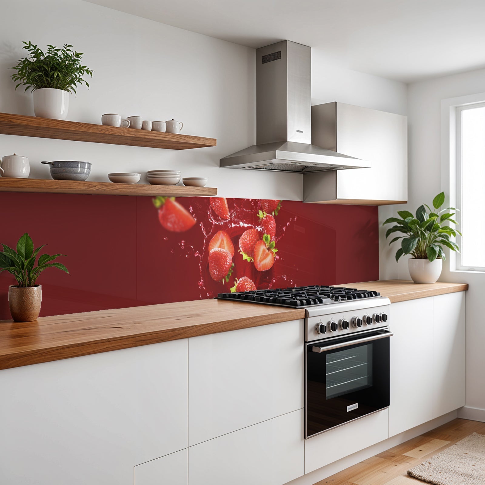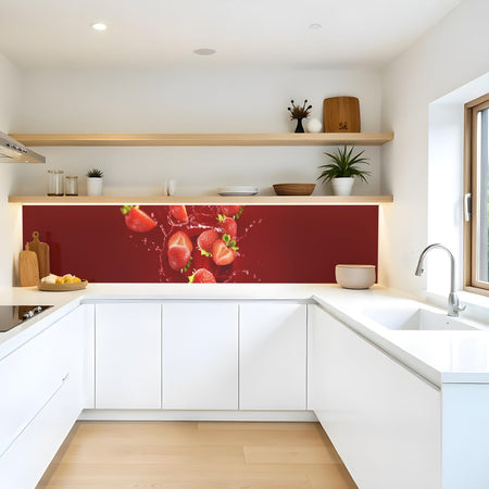 Verleihen Sie Ihrer Küche mit der Küchenrückwand Erdbeere von Rueckwand21 einen stilvollen und modernen Look, der Ihre Persönlichkeit widerspiegelt. Passen Sie die Rückwand genau an Ihre Küche an – einfach Maße eingeben und den gewünschten Motivausschnitt auswählen – und schon ist Ihr neues Küchendesign fertig!