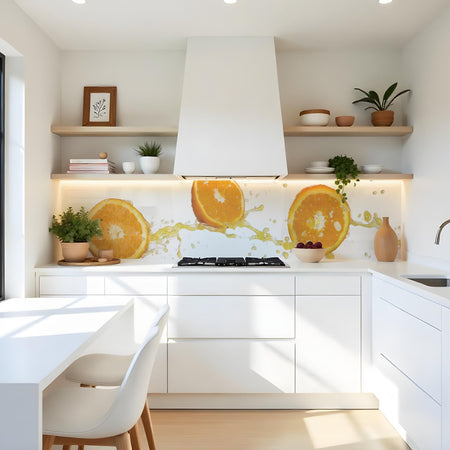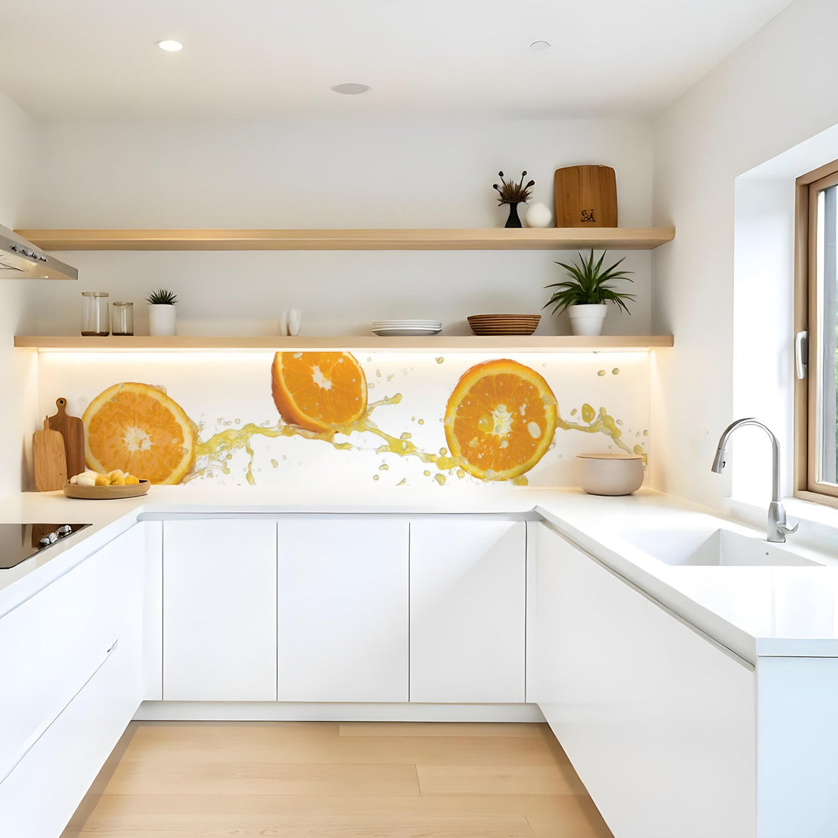 Verleihen Sie Ihrer Küche mit der Küchenrückwand Orange Splash von Rueckwand21 einen stilvollen und modernen Look, der Ihre Persönlichkeit widerspiegelt. Passen Sie die Rückwand genau an Ihre Küche an – einfach Maße eingeben und den gewünschten Motivausschnitt auswählen – und schon ist Ihr neues Küchendesign fertig!
