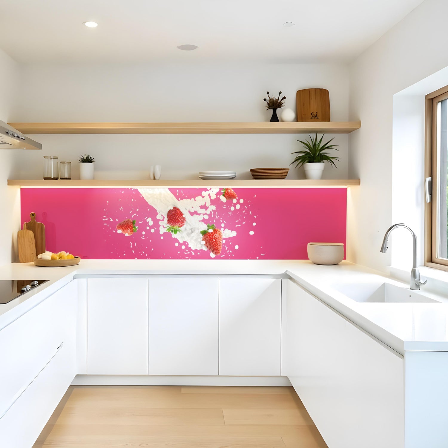 Verleihen Sie Ihrer Küche mit der Küchenrückwand Frische Erdbeeren von Rueckwand21 einen stilvollen und modernen Look, der Ihre Persönlichkeit widerspiegelt. Passen Sie die Rückwand genau an Ihre Küche an – einfach Maße eingeben und den gewünschten Motivausschnitt auswählen – und schon ist Ihr neues Küchendesign fertig!