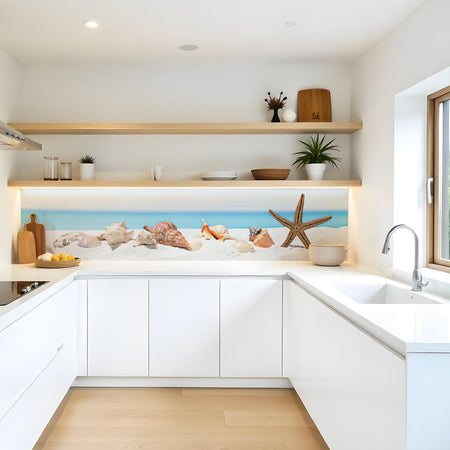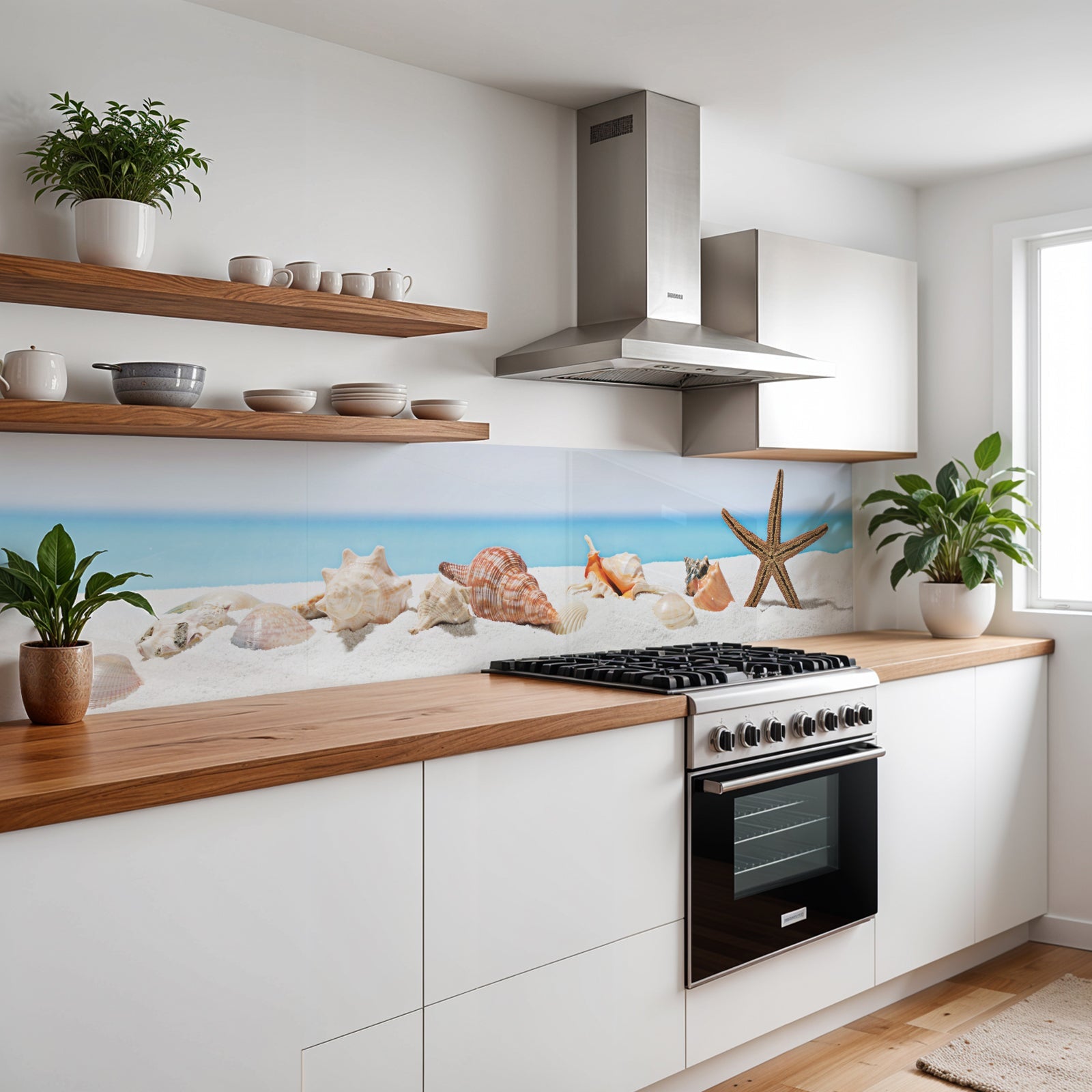 Verleihen Sie Ihrer Küche mit der Küchenrückwand Strand Muschel von Rueckwand21 einen stilvollen und modernen Look, der Ihre Persönlichkeit widerspiegelt. Passen Sie die Rückwand genau an Ihre Küche an – einfach Maße eingeben und den gewünschten Motivausschnitt auswählen – und schon ist Ihr neues Küchendesign fertig!
