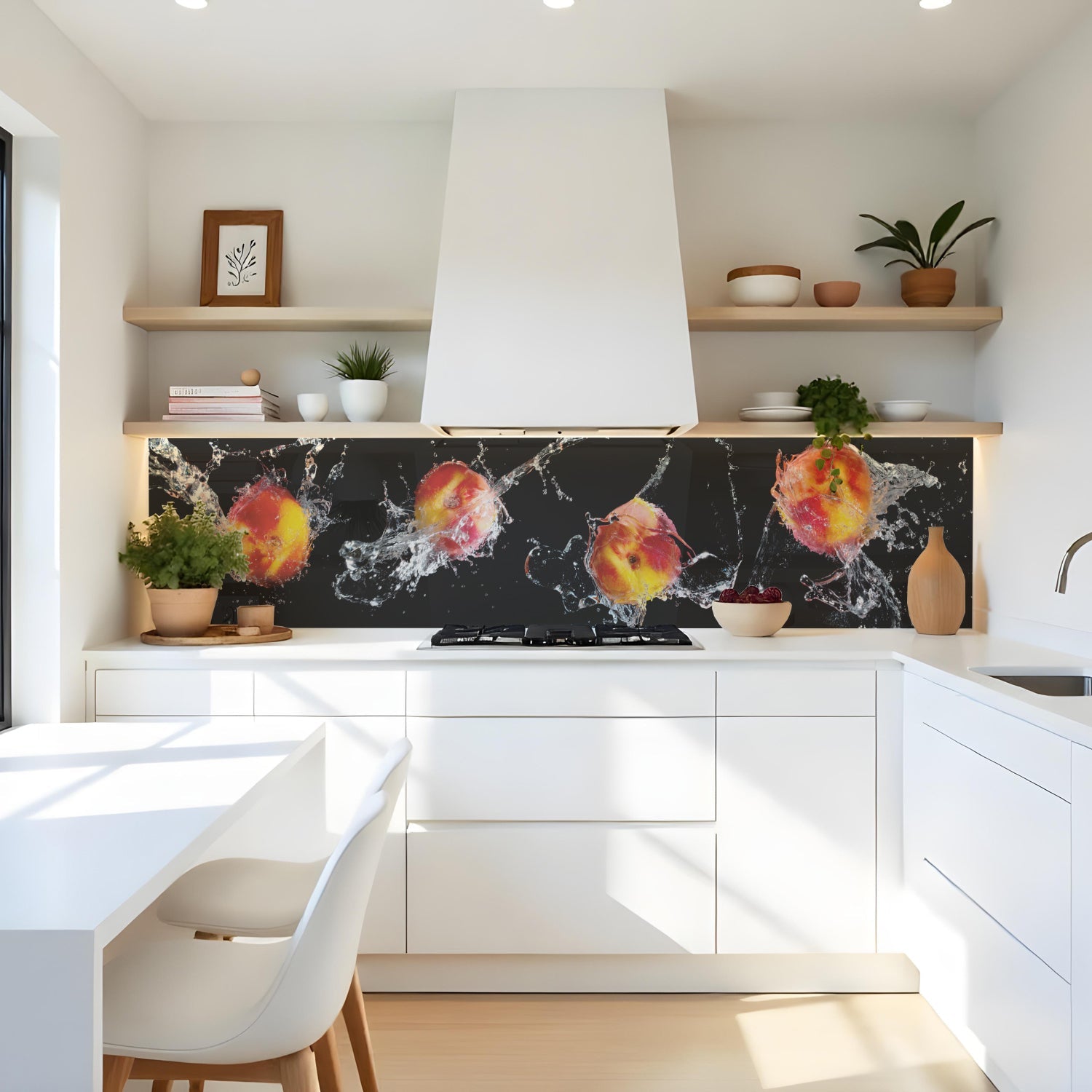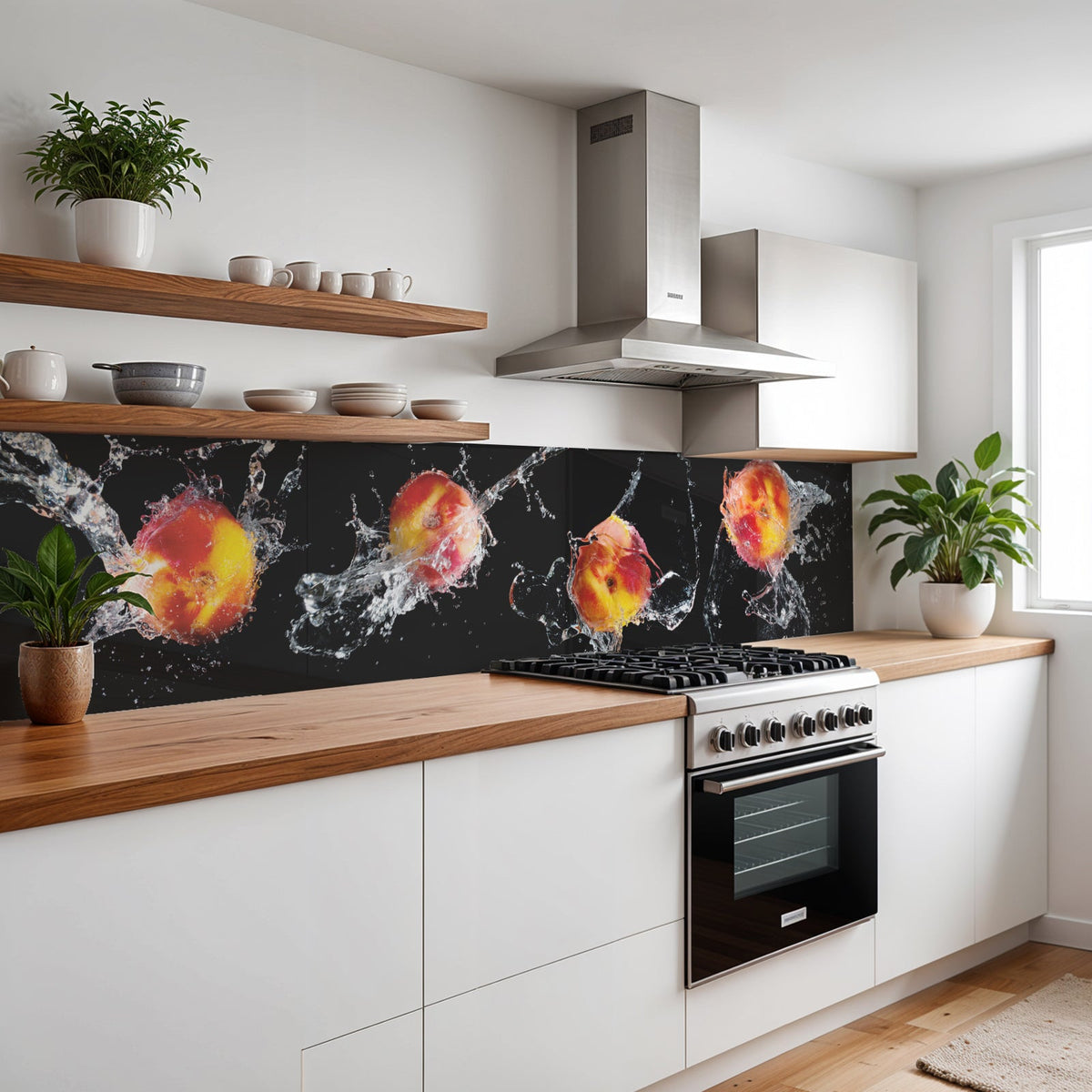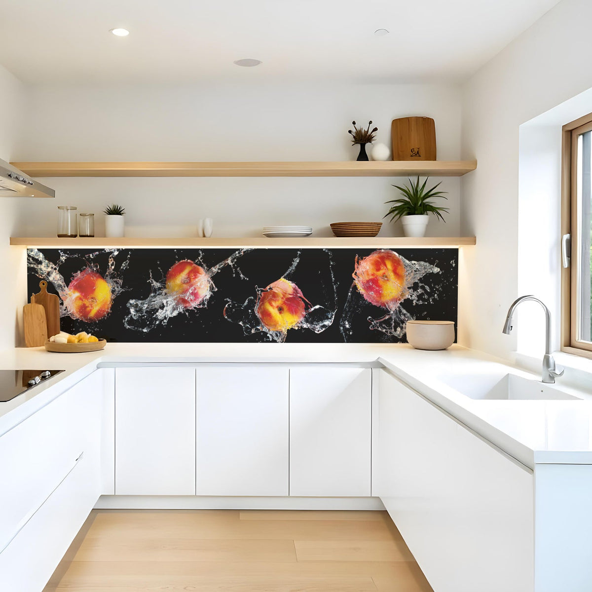 Verleihen Sie Ihrer Küche mit der Küchenrückwand Pfirsich Splash von Rueckwand21 einen stilvollen und modernen Look, der Ihre Persönlichkeit widerspiegelt. Passen Sie die Rückwand genau an Ihre Küche an – einfach Maße eingeben und den gewünschten Motivausschnitt auswählen – und schon ist Ihr neues Küchendesign fertig!