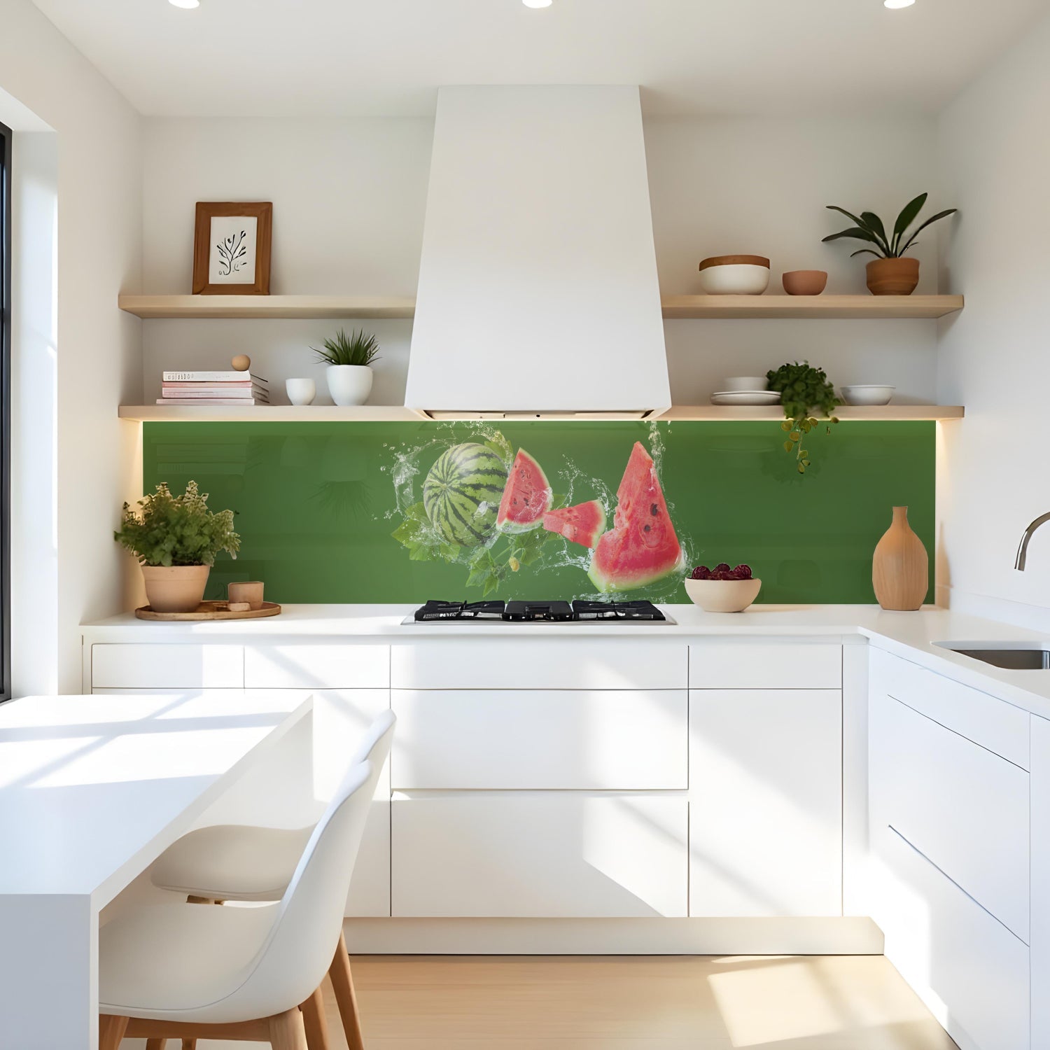 Verleihen Sie Ihrer Küche mit der Küchenrückwand Wassermelonen Splash von Rueckwand21 einen stilvollen und modernen Look, der Ihre Persönlichkeit widerspiegelt. Passen Sie die Rückwand genau an Ihre Küche an – einfach Maße eingeben und den gewünschten Motivausschnitt auswählen – und schon ist Ihr neues Küchendesign fertig!
