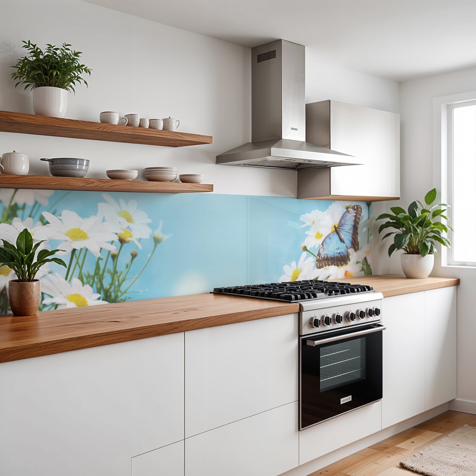 Verleihen Sie Ihrer Küche mit der Küchenrückwand Schmetterling von Rueckwand21 einen stilvollen und modernen Look, der Ihre Persönlichkeit widerspiegelt. Passen Sie die Rückwand genau an Ihre Küche an – einfach Maße eingeben und den gewünschten Motivausschnitt auswählen – und schon ist Ihr neues Küchendesign fertig!