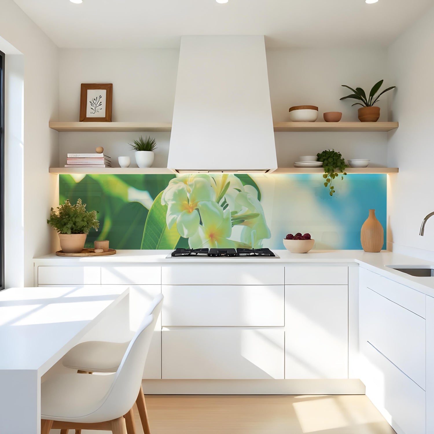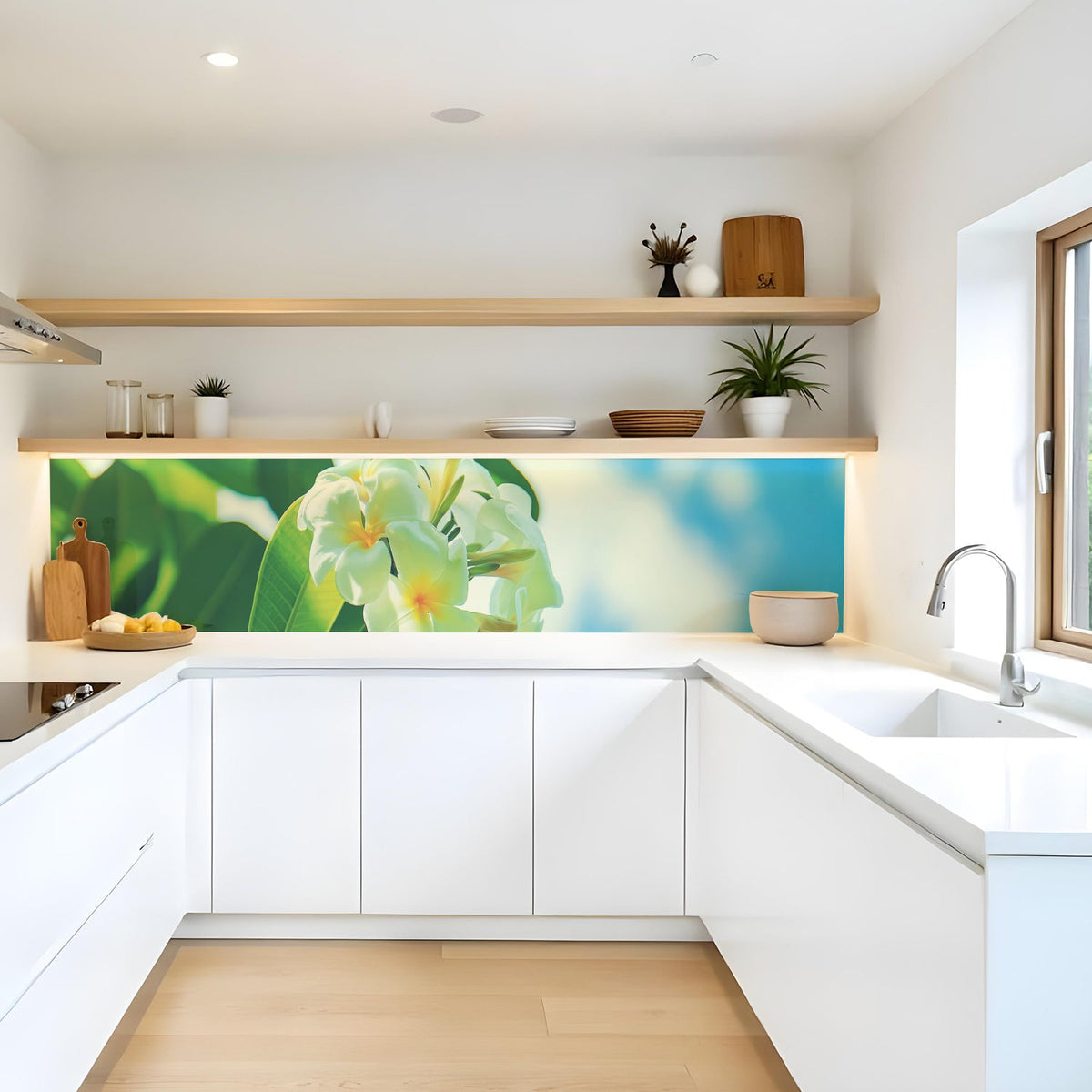 Verleihen Sie Ihrer Küche mit der Küchenrückwand Weiße Blumen von Rueckwand21 einen stilvollen und modernen Look, der Ihre Persönlichkeit widerspiegelt. Passen Sie die Rückwand genau an Ihre Küche an – einfach Maße eingeben und den gewünschten Motivausschnitt auswählen – und schon ist Ihr neues Küchendesign fertig!