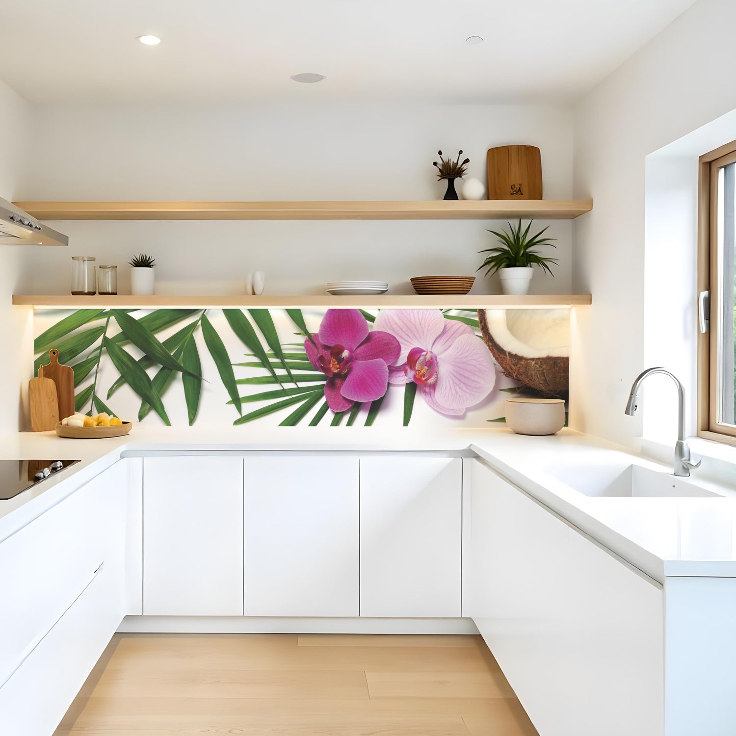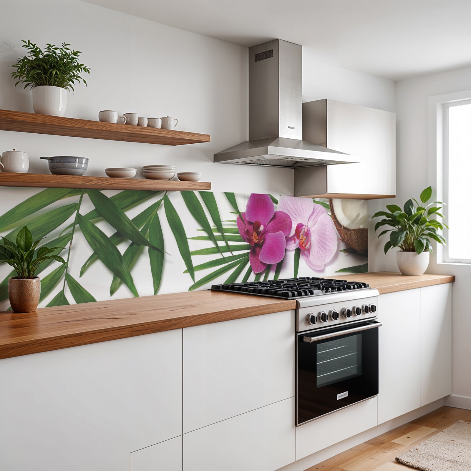 Verleihen Sie Ihrer Küche mit der Küchenrückwand Kokosnuss von Rueckwand21 einen stilvollen und modernen Look, der Ihre Persönlichkeit widerspiegelt. Passen Sie die Rückwand genau an Ihre Küche an – einfach Maße eingeben und den gewünschten Motivausschnitt auswählen – und schon ist Ihr neues Küchendesign fertig!