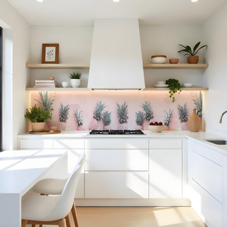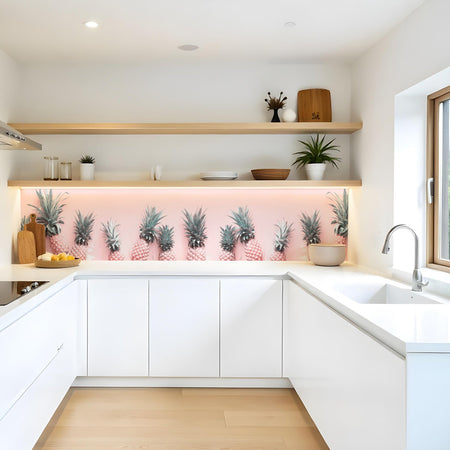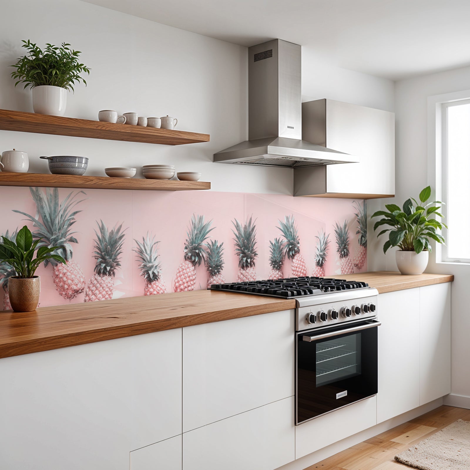 Verleihen Sie Ihrer Küche mit der Küchenrückwand Ananas von Rueckwand21 einen stilvollen und modernen Look, der Ihre Persönlichkeit widerspiegelt. Passen Sie die Rückwand genau an Ihre Küche an – einfach Maße eingeben und den gewünschten Motivausschnitt auswählen – und schon ist Ihr neues Küchendesign fertig!