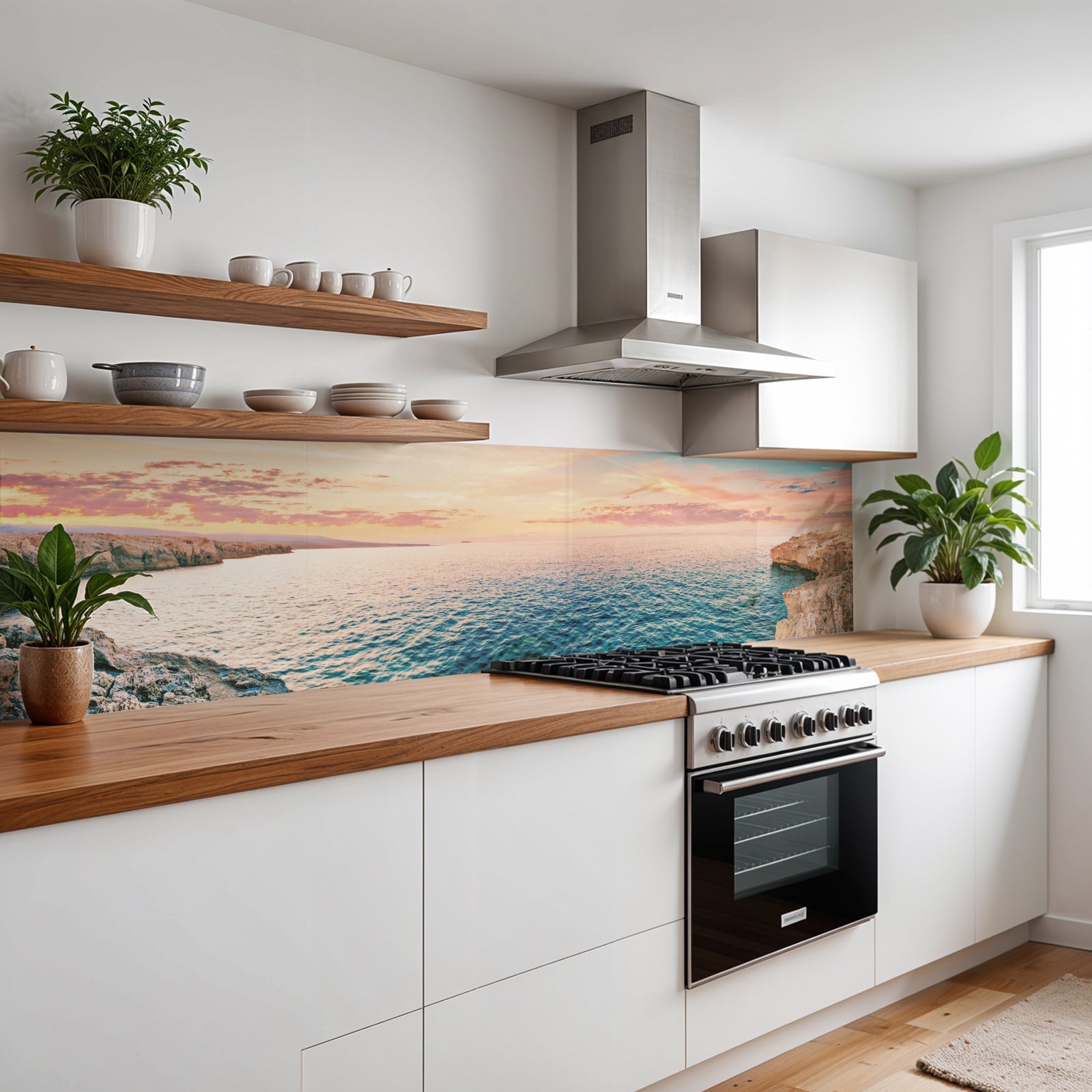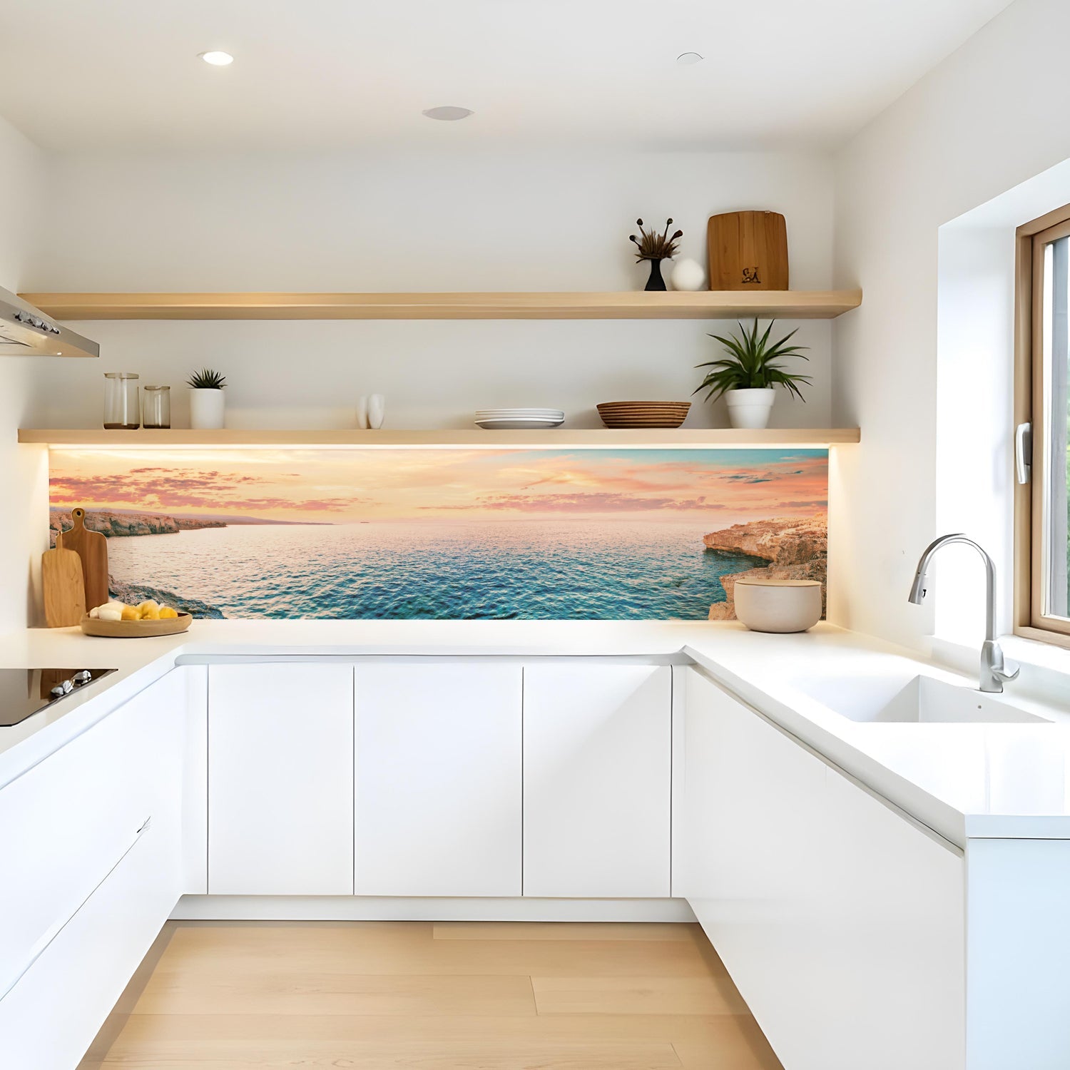 Verleihen Sie Ihrer Küche mit der Küchenrückwand Meeresküste von Rueckwand21 einen stilvollen und modernen Look, der Ihre Persönlichkeit widerspiegelt. Passen Sie die Rückwand genau an Ihre Küche an – einfach Maße eingeben und den gewünschten Motivausschnitt auswählen – und schon ist Ihr neues Küchendesign fertig!
