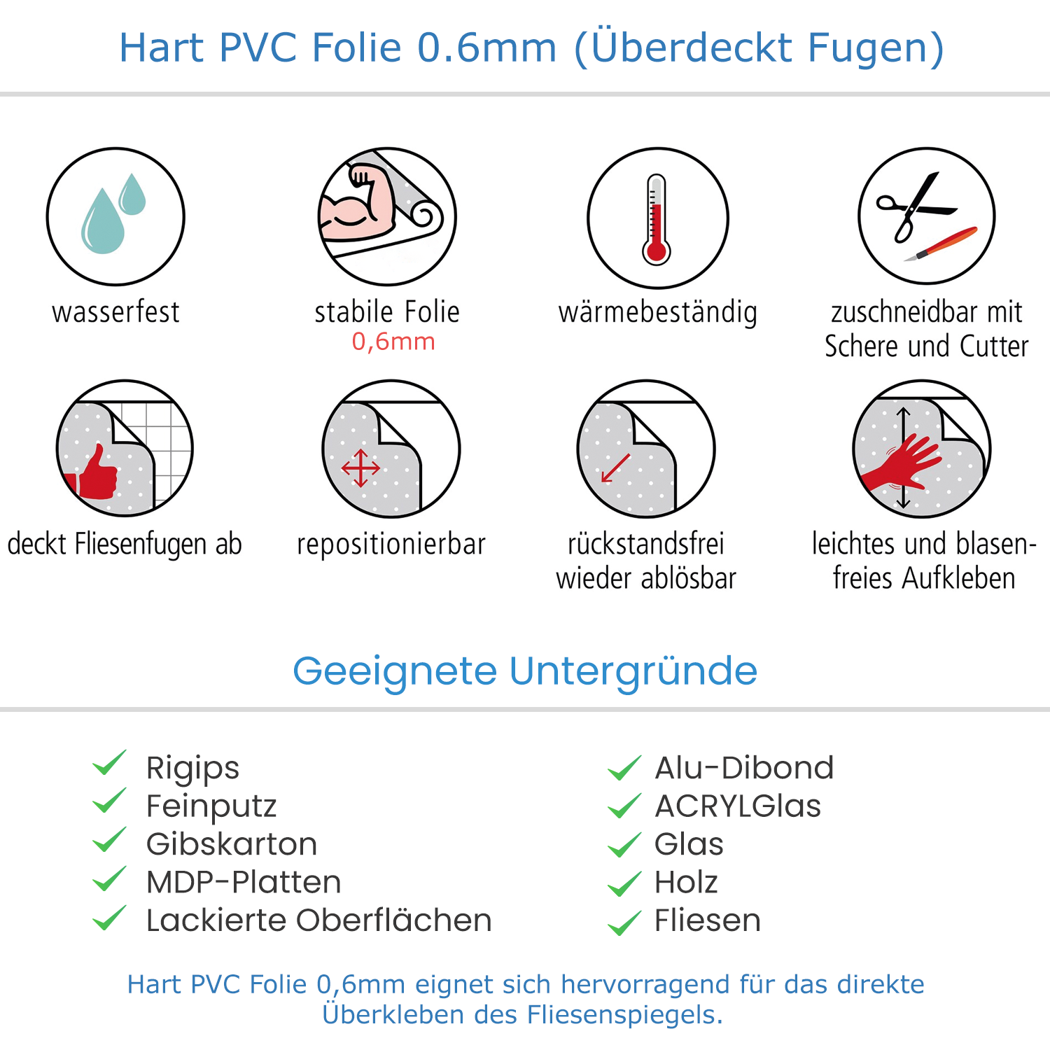 Hart-PVC mit Stärken von 0,6mm und 1,6mm ist eine robuste und langlebige Lösung für Rückwände. Dank seiner Widerstandsfähigkeit, Formstabilität und einfachen Verarbeitung eignet es sich ideal für vielseitige Anwendungen in Küche, Bad und anderen Bereichen.