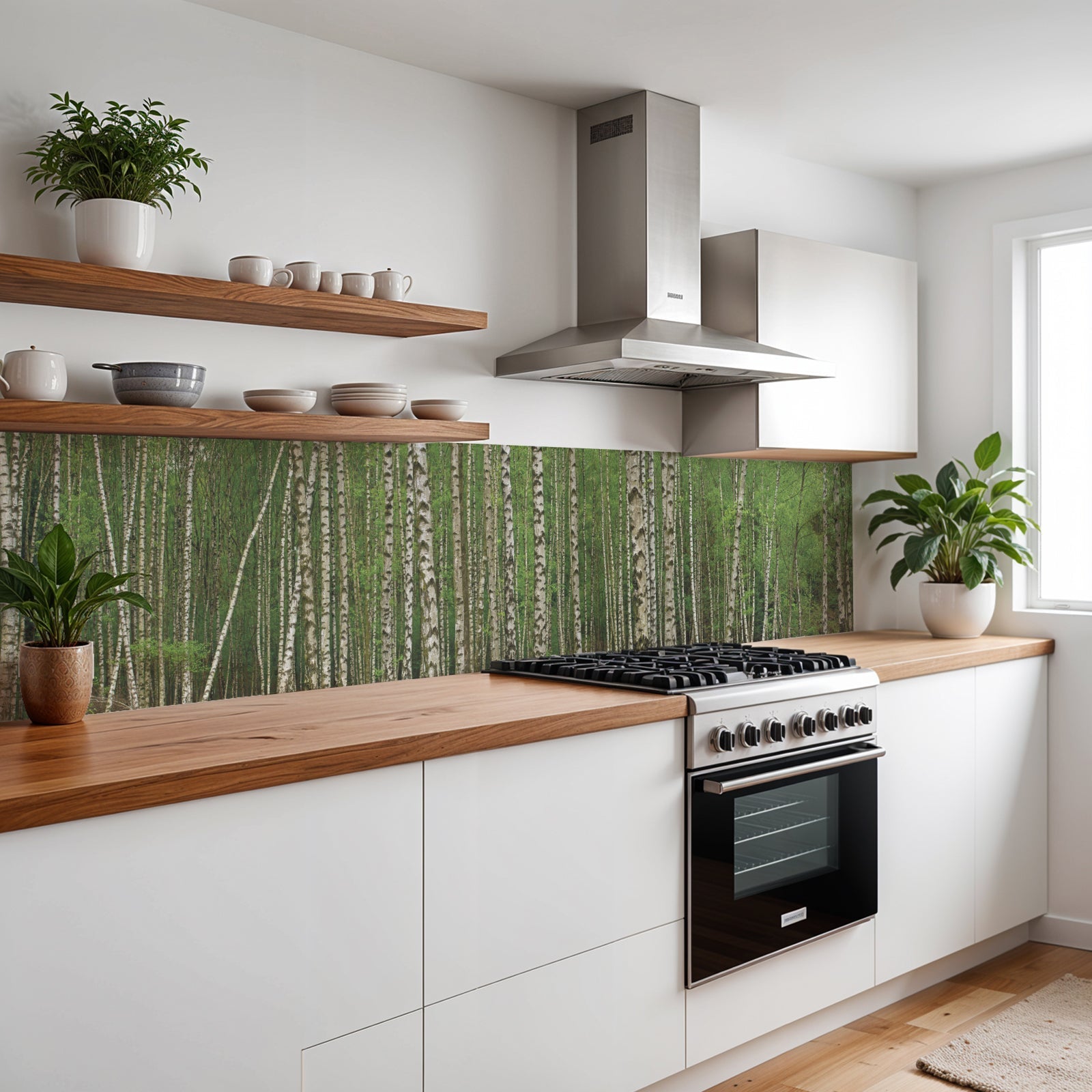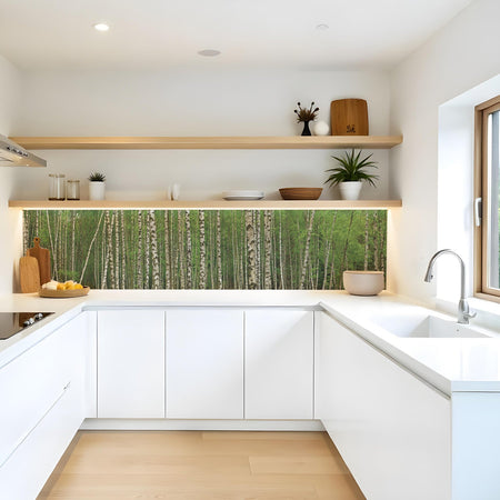 Verleihen Sie Ihrer Küche mit der Küchenrückwand Birkenwald von Rueckwand21 einen stilvollen und modernen Look, der Ihre Persönlichkeit widerspiegelt. Passen Sie die Rückwand genau an Ihre Küche an – einfach Maße eingeben und den gewünschten Motivausschnitt auswählen – und schon ist Ihr neues Küchendesign fertig!