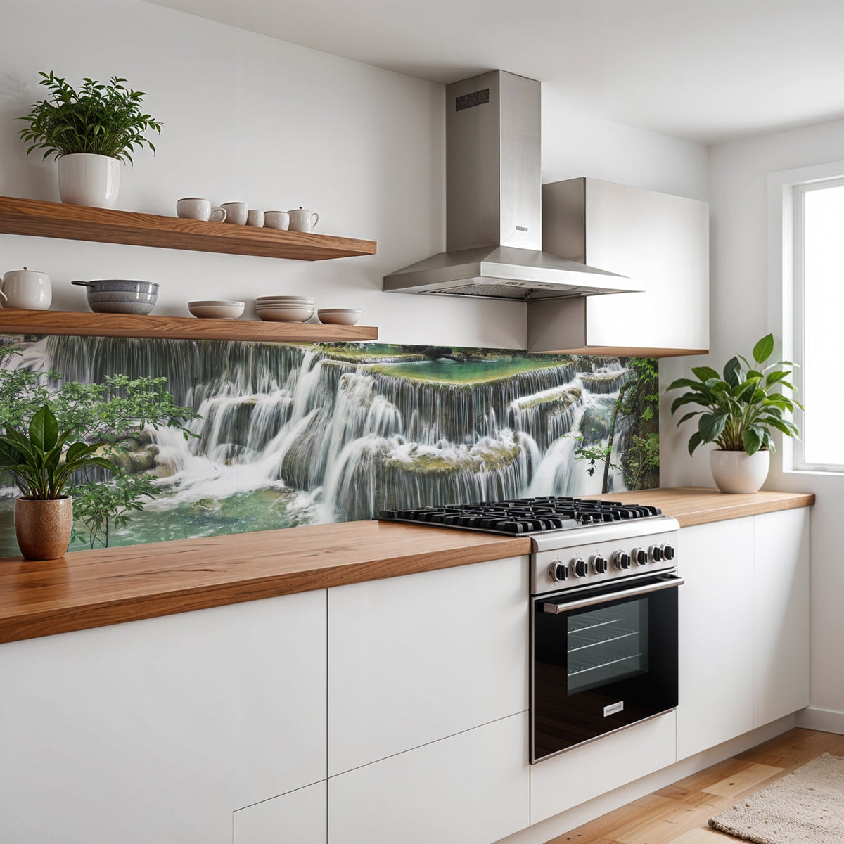 Verleihen Sie Ihrer Küche mit der Küchenrückwand Wasserfall von Rueckwand21 einen stilvollen und modernen Look, der Ihre Persönlichkeit widerspiegelt. Passen Sie die Rückwand genau an Ihre Küche an – einfach Maße eingeben und den gewünschten Motivausschnitt auswählen – und schon ist Ihr neues Küchendesign fertig!