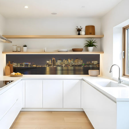 Verleihen Sie Ihrer Küche mit der Küchenrückwand Skyline von Rueckwand21 einen stilvollen und modernen Look, der Ihre Persönlichkeit widerspiegelt. Passen Sie die Rückwand genau an Ihre Küche an – einfach Maße eingeben und den gewünschten Motivausschnitt auswählen – und schon ist Ihr neues Küchendesign fertig!