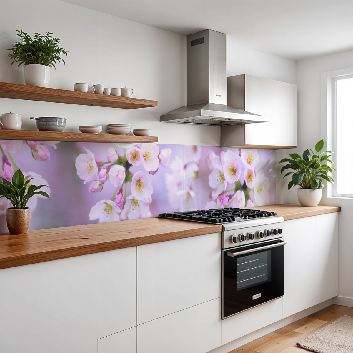 Verleihen Sie Ihrer Küche mit der Küchenrückwand Kirschblütenzweige von Rueckwand21 einen stilvollen und modernen Look, der Ihre Persönlichkeit widerspiegelt. Passen Sie die Rückwand genau an Ihre Küche an – einfach Maße eingeben und den gewünschten Motivausschnitt auswählen – und schon ist Ihr neues Küchendesign fertig!