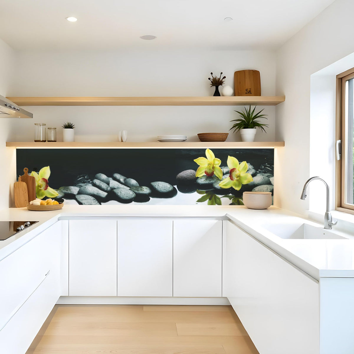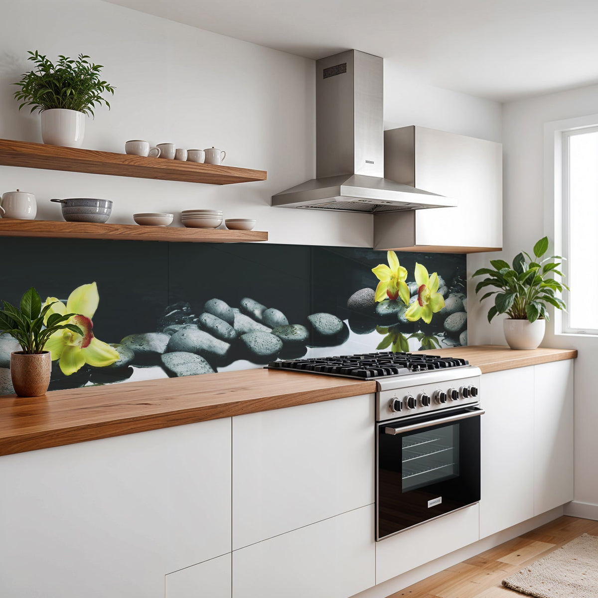 Verleihen Sie Ihrer Küche mit der Küchenrückwand Zen Spa Steine von Rueckwand21 einen stilvollen und modernen Look, der Ihre Persönlichkeit widerspiegelt. Passen Sie die Rückwand genau an Ihre Küche an – einfach Maße eingeben und den gewünschten Motivausschnitt auswählen – und schon ist Ihr neues Küchendesign fertig!
