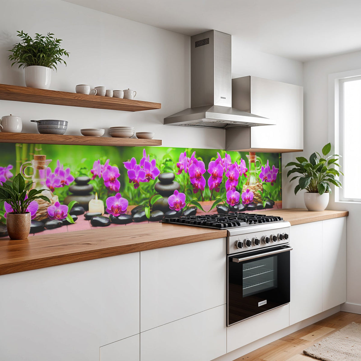 Verleihen Sie Ihrer Küche mit der Küchenrückwand Zen Spa Steine von Rueckwand21 einen stilvollen und modernen Look, der Ihre Persönlichkeit widerspiegelt. Passen Sie die Rückwand genau an Ihre Küche an – einfach Maße eingeben und den gewünschten Motivausschnitt auswählen – und schon ist Ihr neues Küchendesign fertig!