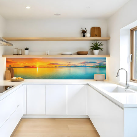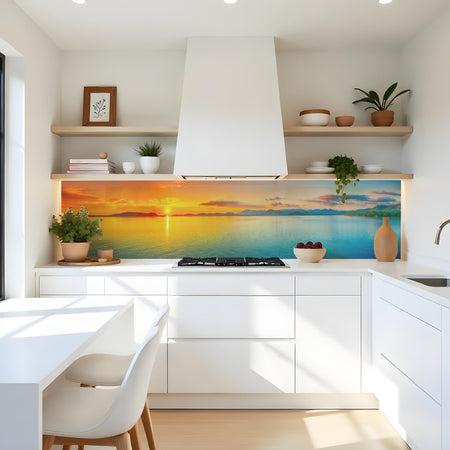 Verleihen Sie Ihrer Küche mit der Küchenrückwand Sonnenaufgang von Rueckwand21 einen stilvollen und modernen Look, der Ihre Persönlichkeit widerspiegelt. Passen Sie die Rückwand genau an Ihre Küche an – einfach Maße eingeben und den gewünschten Motivausschnitt auswählen – und schon ist Ihr neues Küchendesign fertig!