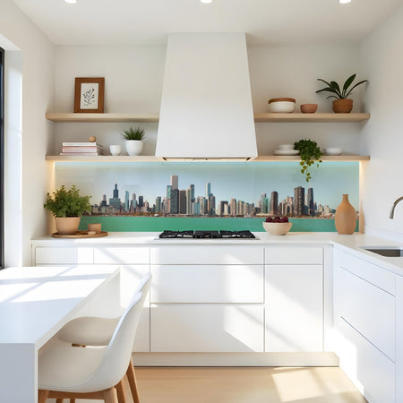 Verleihen Sie Ihrer Küche mit der Küchenrückwand Skyline von Rueckwand21 einen stilvollen und modernen Look, der Ihre Persönlichkeit widerspiegelt. Passen Sie die Rückwand genau an Ihre Küche an – einfach Maße eingeben und den gewünschten Motivausschnitt auswählen – und schon ist Ihr neues Küchendesign fertig!