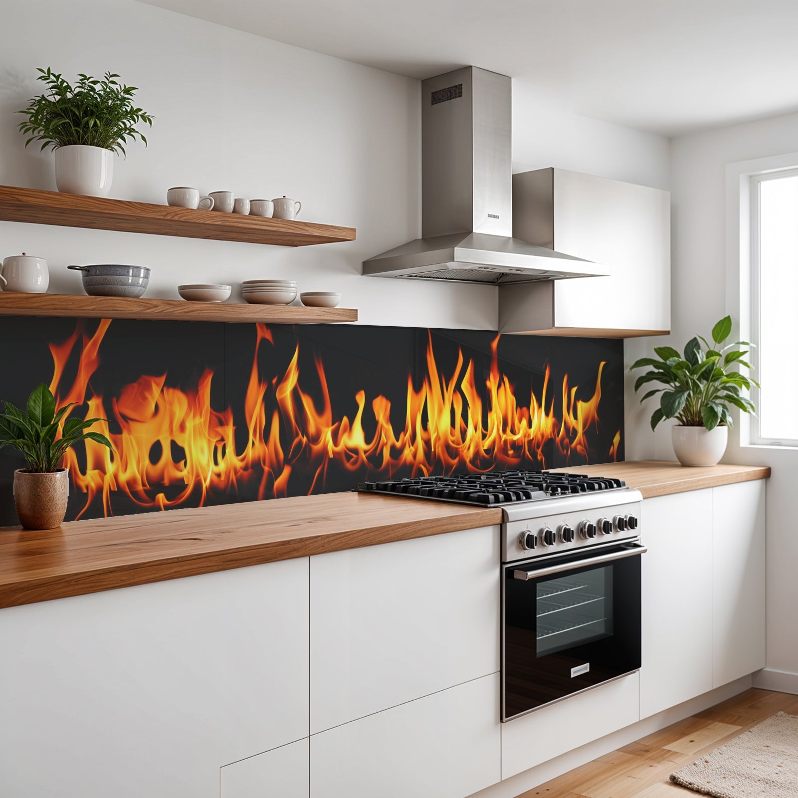 Verleihen Sie Ihrer Küche mit der Küchenrückwand Feuer Flamme von Rueckwand21 einen stilvollen und modernen Look, der Ihre Persönlichkeit widerspiegelt. Passen Sie die Rückwand genau an Ihre Küche an – einfach Maße eingeben und den gewünschten Motivausschnitt auswählen – und schon ist Ihr neues Küchendesign fertig!