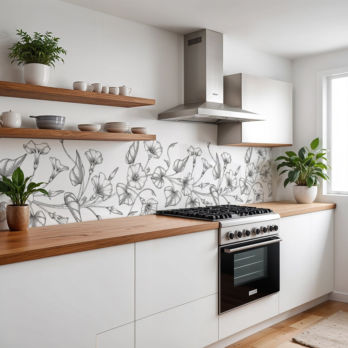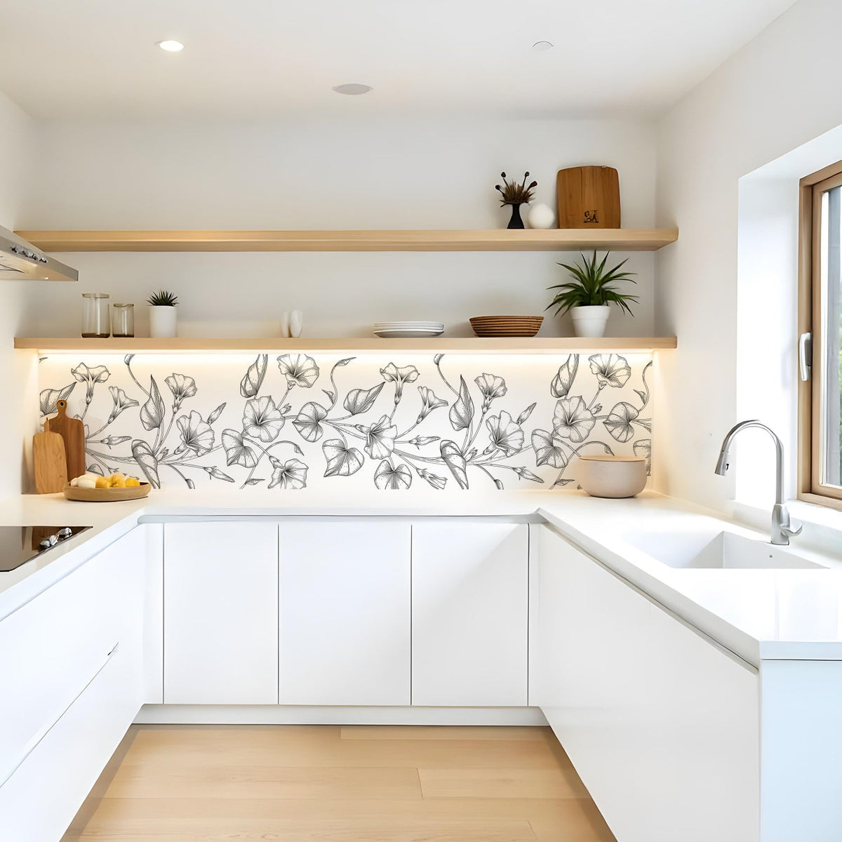 Verleihen Sie Ihrer Küche mit der Küchenrückwand Blumen von Rueckwand21 einen stilvollen und modernen Look, der Ihre Persönlichkeit widerspiegelt. Passen Sie die Rückwand genau an Ihre Küche an – einfach Maße eingeben und den gewünschten Motivausschnitt auswählen – und schon ist Ihr neues Küchendesign fertig!