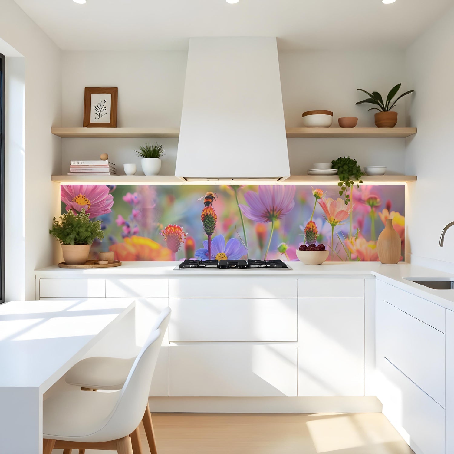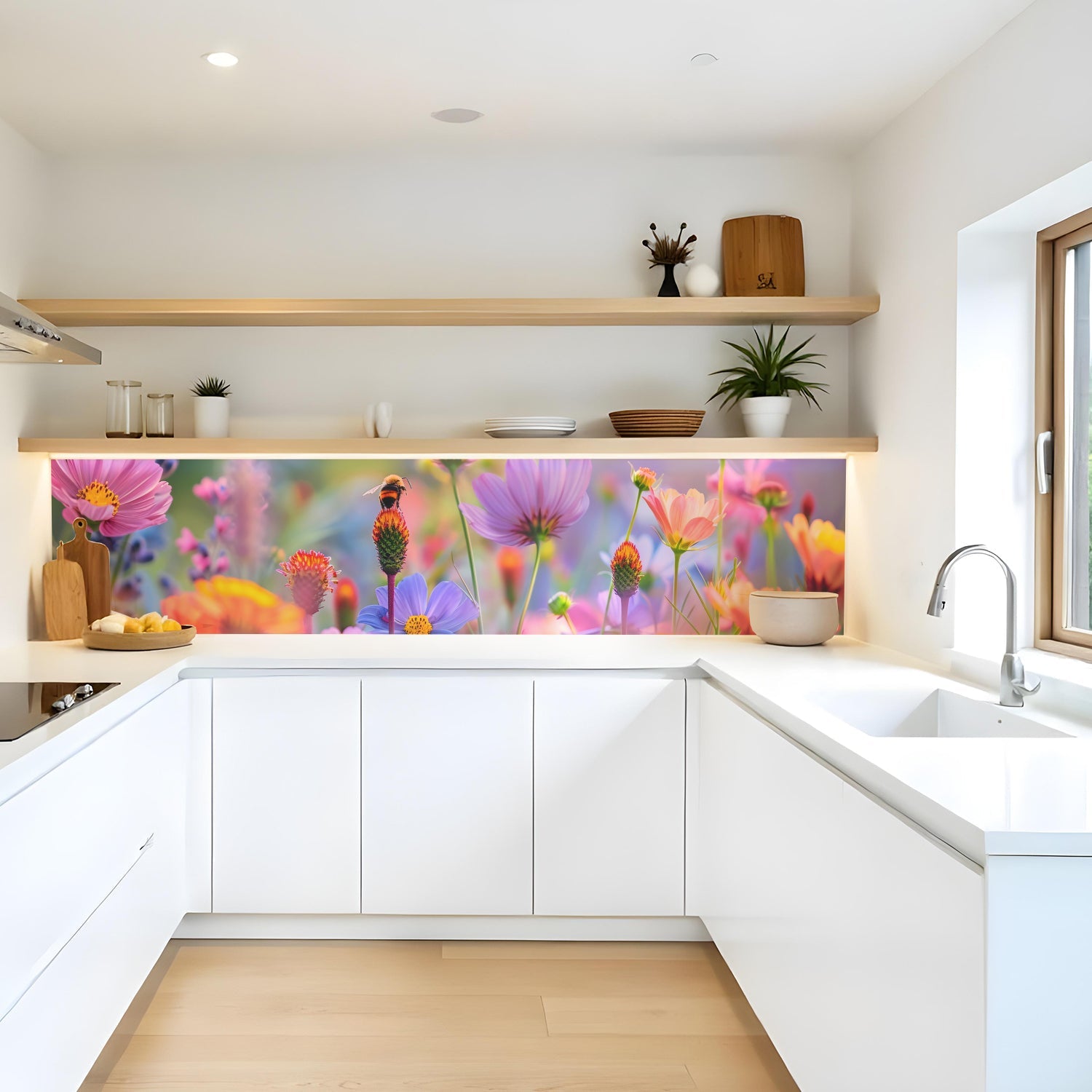 Verleihen Sie Ihrer Küche mit der Küchenrückwand Blumenfeld von Rueckwand21 einen stilvollen und modernen Look, der Ihre Persönlichkeit widerspiegelt. Passen Sie die Rückwand genau an Ihre Küche an – einfach Maße eingeben und den gewünschten Motivausschnitt auswählen – und schon ist Ihr neues Küchendesign fertig!