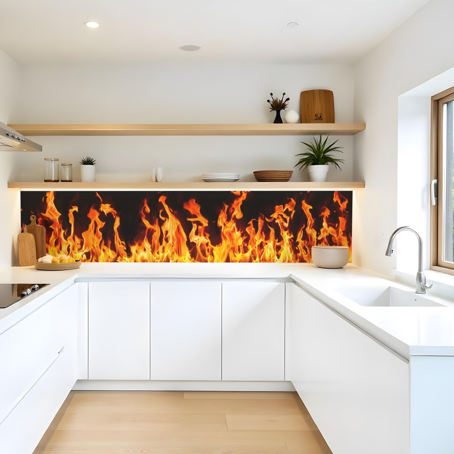 Verleihen Sie Ihrer Küche mit der Küchenrückwand Feuer Flamme von Rueckwand21 einen stilvollen und modernen Look, der Ihre Persönlichkeit widerspiegelt. Passen Sie die Rückwand genau an Ihre Küche an – einfach Maße eingeben und den gewünschten Motivausschnitt auswählen – und schon ist Ihr neues Küchendesign fertig!