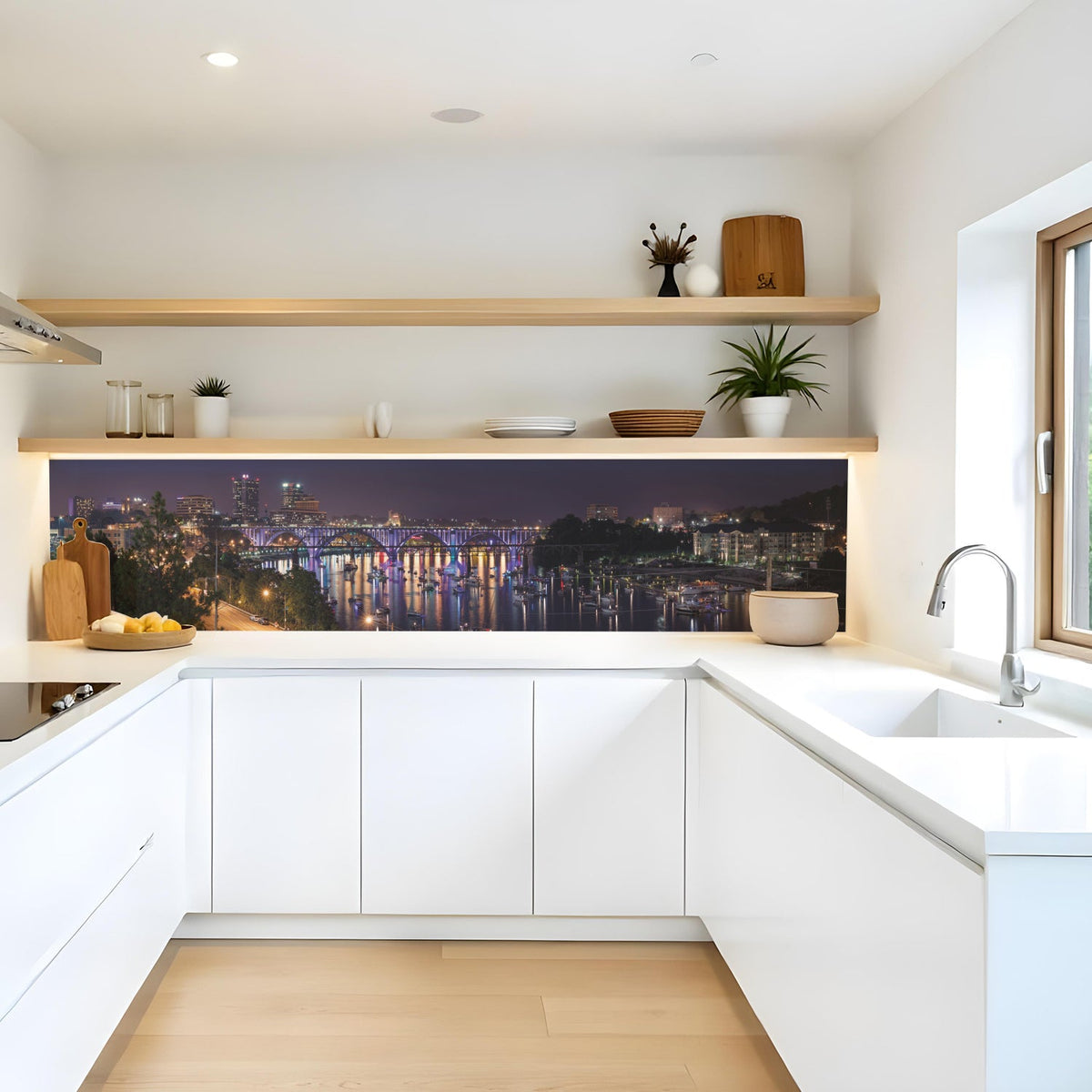 Verleihen Sie Ihrer Küche mit der Küchenrückwand Nacht von Rueckwand21 einen stilvollen und modernen Look, der Ihre Persönlichkeit widerspiegelt. Passen Sie die Rückwand genau an Ihre Küche an – einfach Maße eingeben und den gewünschten Motivausschnitt auswählen – und schon ist Ihr neues Küchendesign fertig!