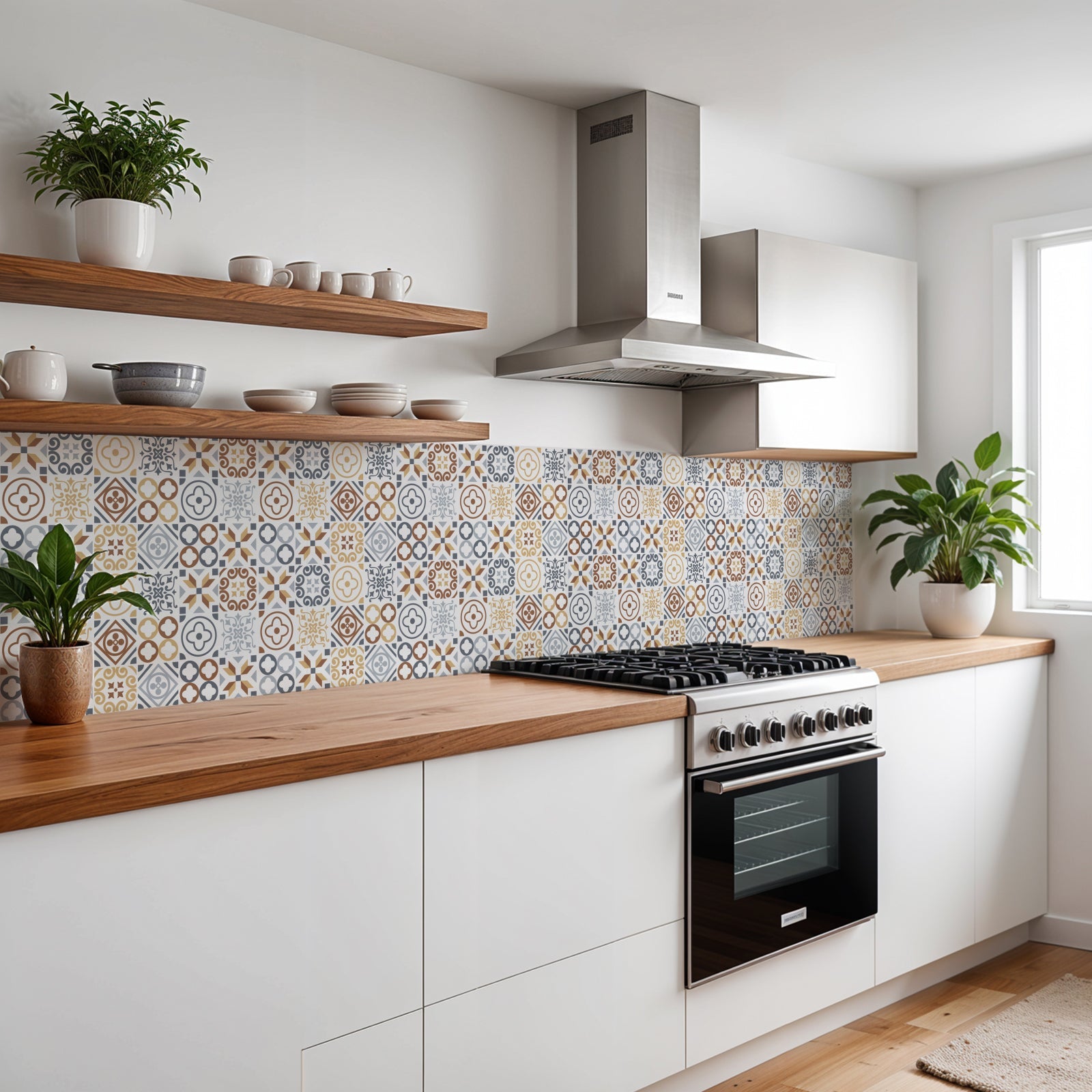 • Fliesen: Die Klebefolie haftet gut auf glatten Fliesen, ideal für Küchen- und Badrückwände.